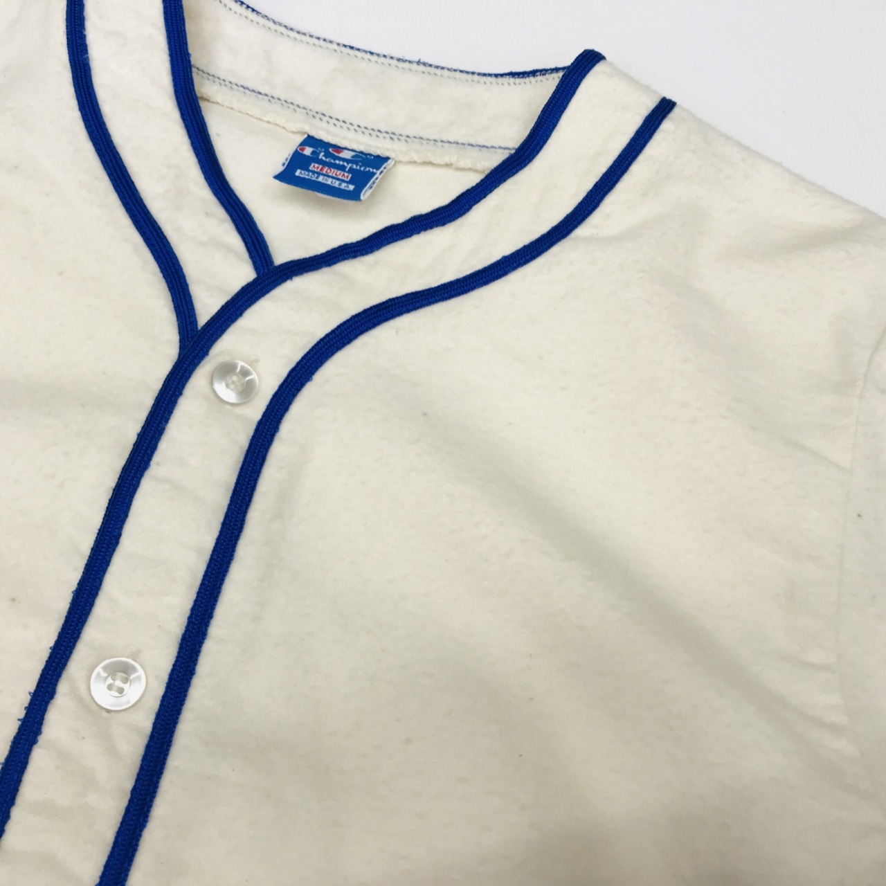 CHAMPION チャンピオン 90年代 USA製 コットンネル地 半袖ベースボールシャツ 前開き オフホワイト ML