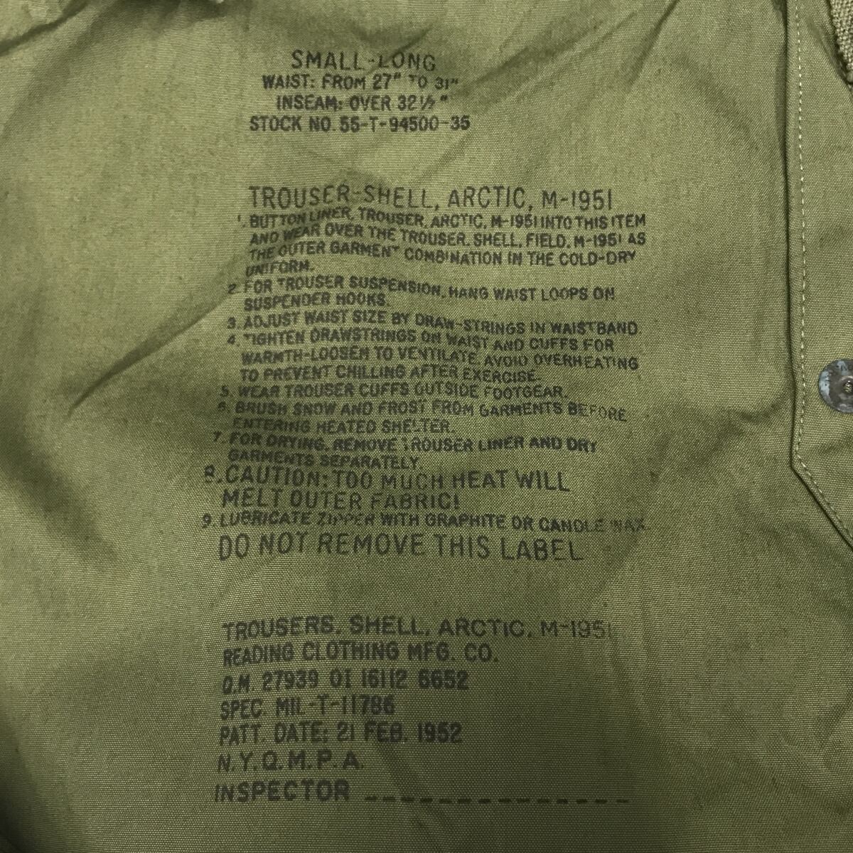 50年代 U.S.ARMY M-51 TROUSERS.SHELL. ARCTIC.M-1951トラウザー オーバーパンツ シェルパンツ SMALL-LONG - 3