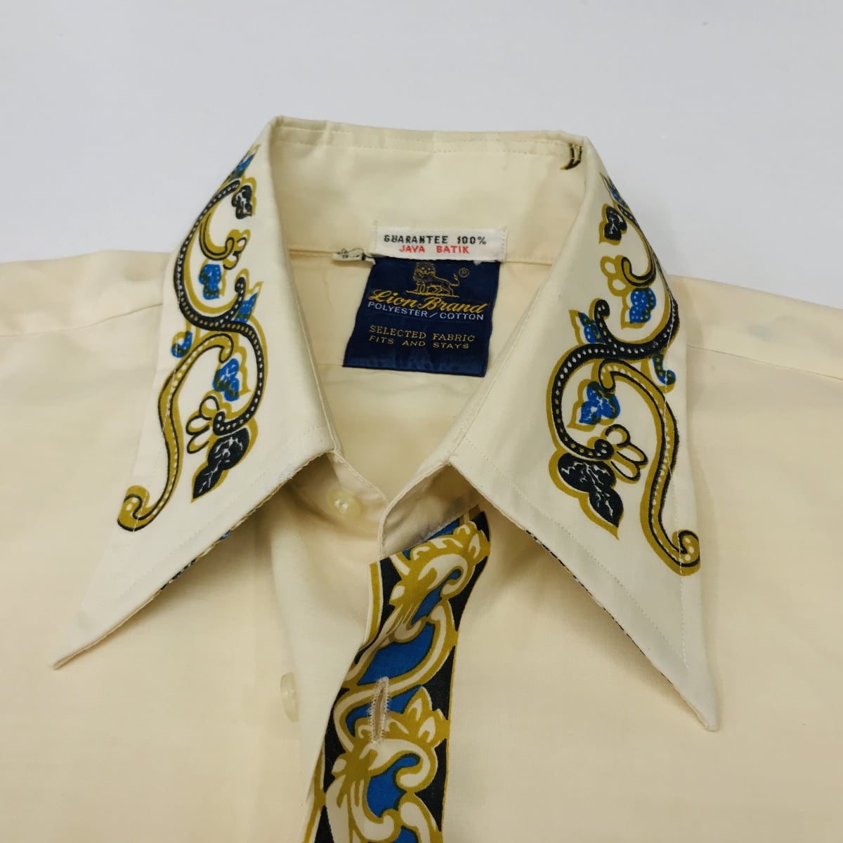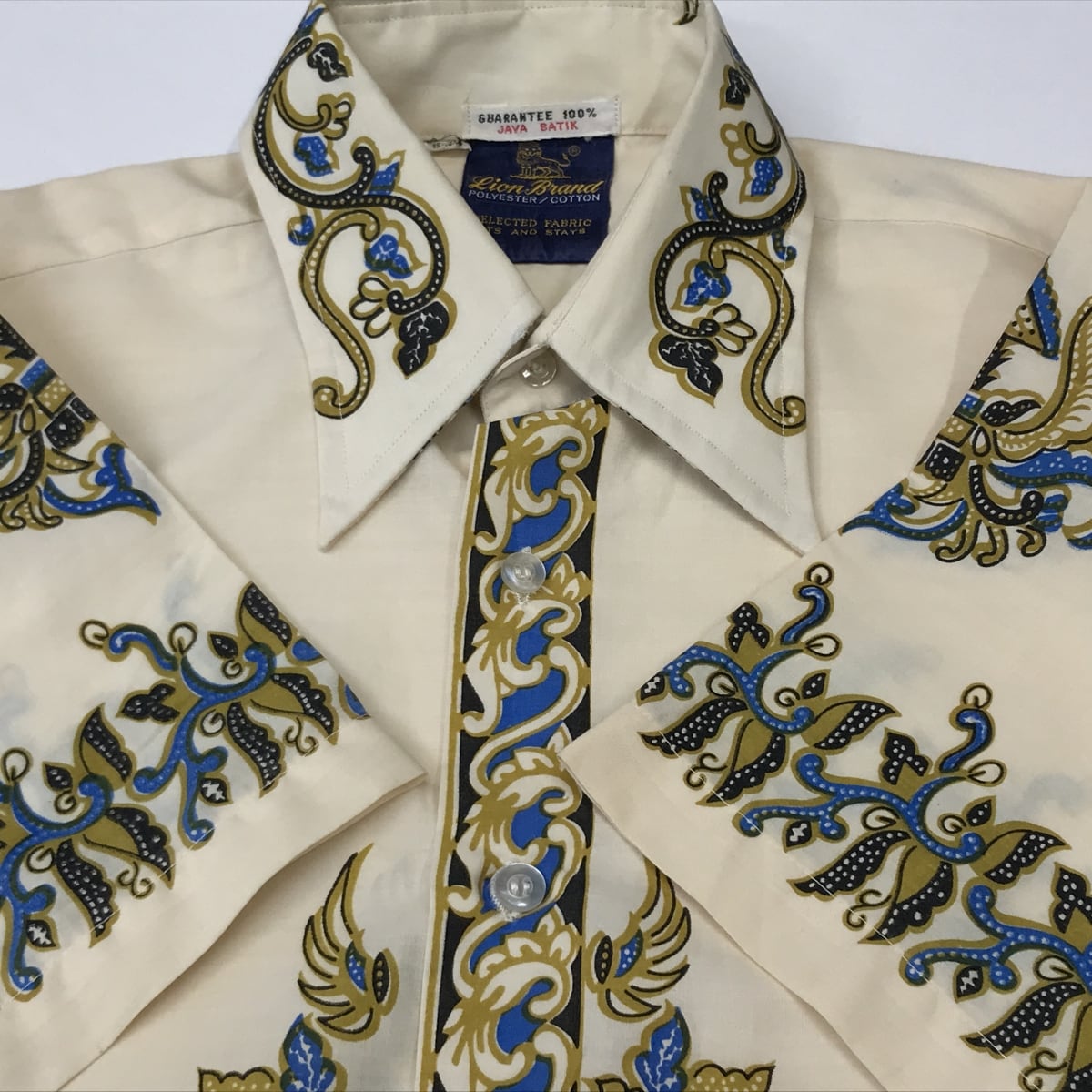 ライオン ブランド 70年代 JAVA BATIK ジャワバティック バティック柄 コットン 半袖シャツ うすベージュ L