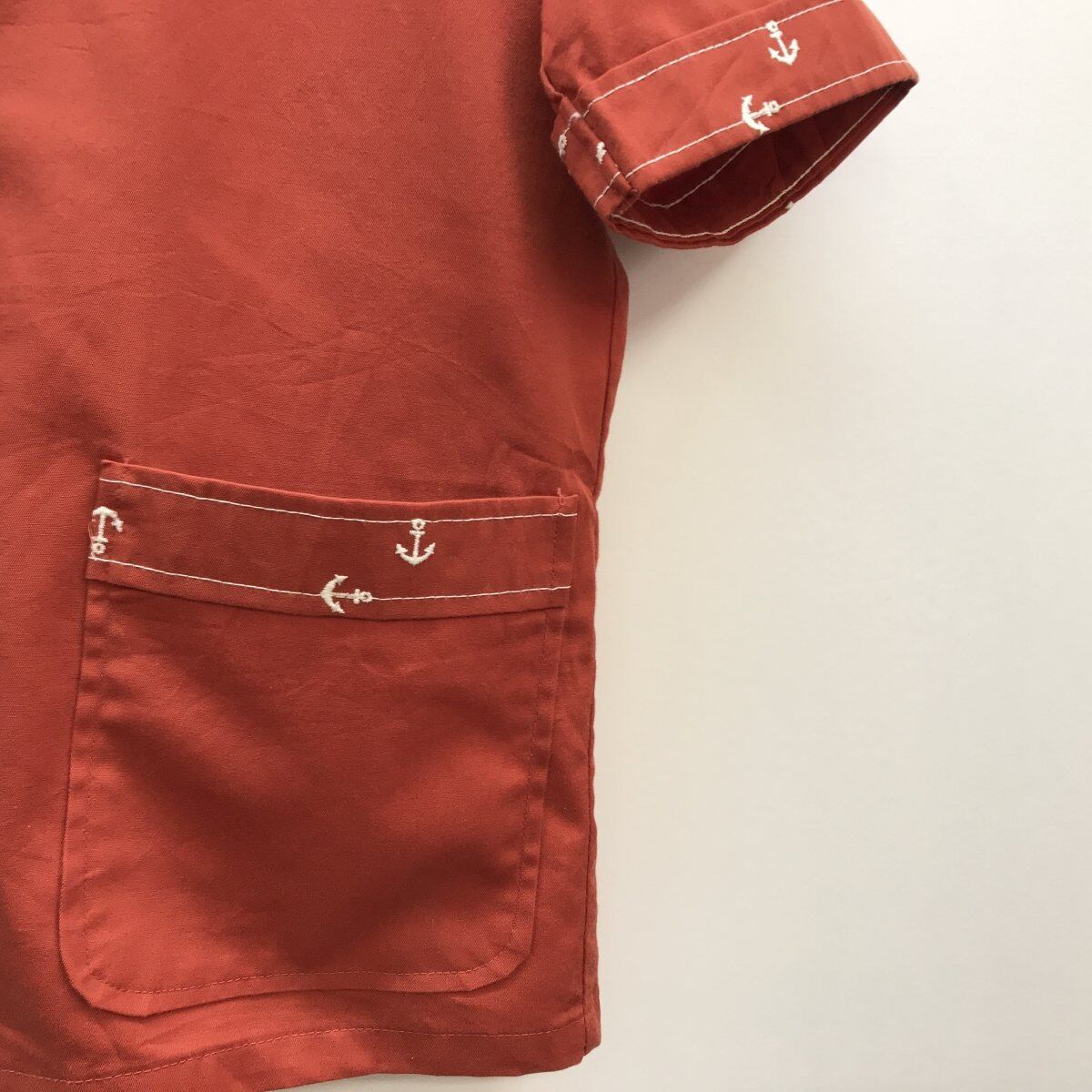 袖とポケットのいかりの刺繍がレトロでかわいすぎます!