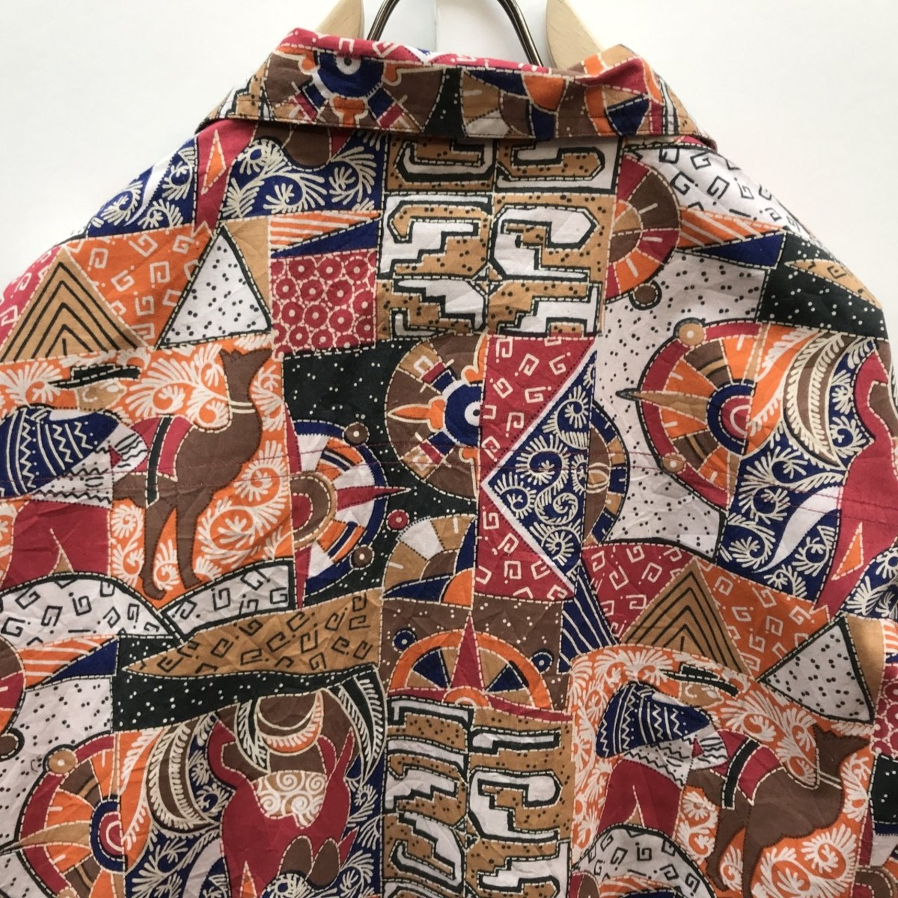 [SALE] キャンプダービーネイビー メキシコ コロンビア バティック エスニック ミックス柄 半袖総柄シャツ 全柄 パッチワーク風 XL