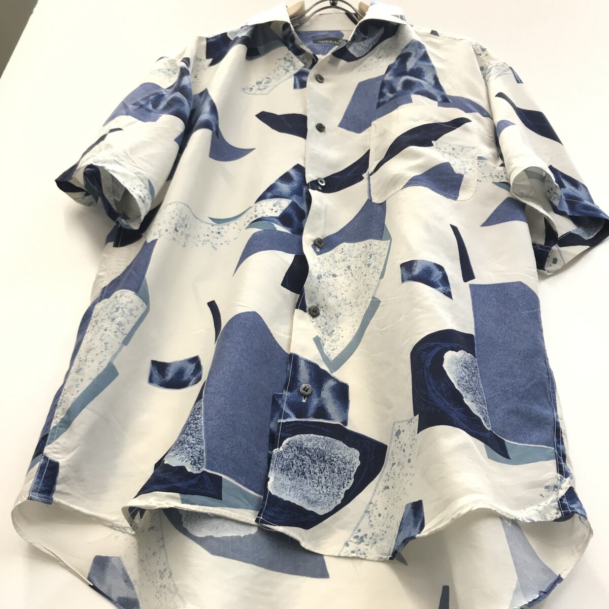 KEY LARGO キーラルゴ 80〜90年代 JPN シルク100% 総柄 半袖シャツ クールなブルー柄 ICE ICY DESIGN ML