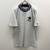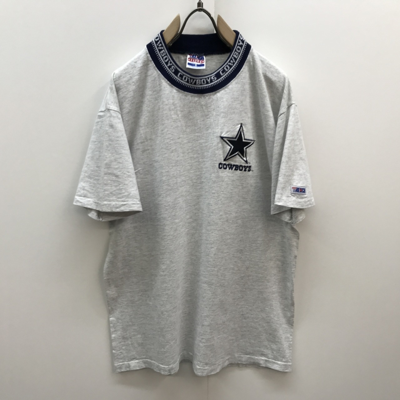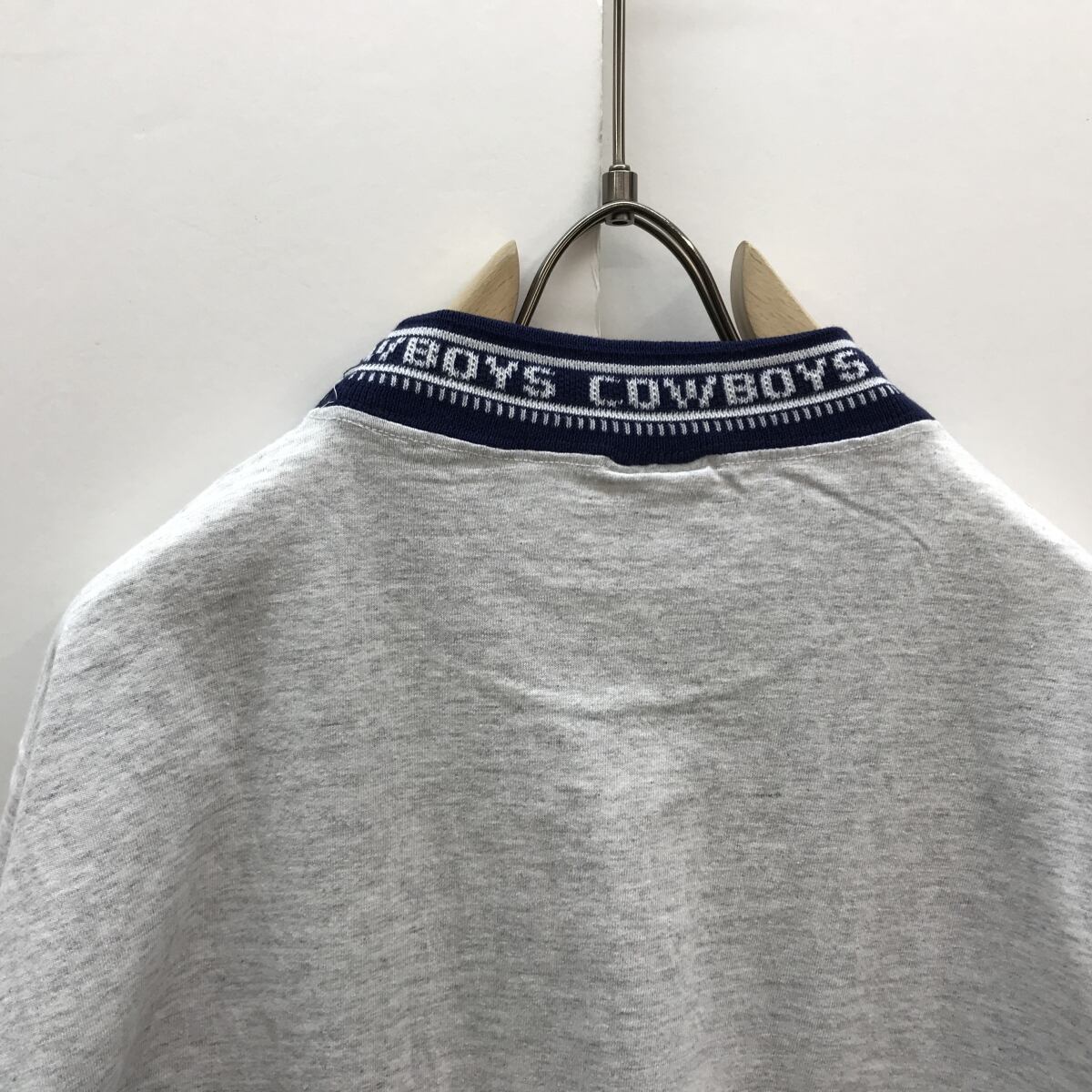 ULTRA トレンチ 90年代 USA製 NFL ダラスカウボーイズ DALLAS COWBOYS、襟リンガーロゴ入りリブ ローンスター胸ワンポイント刺繍入り アッシュグレー L