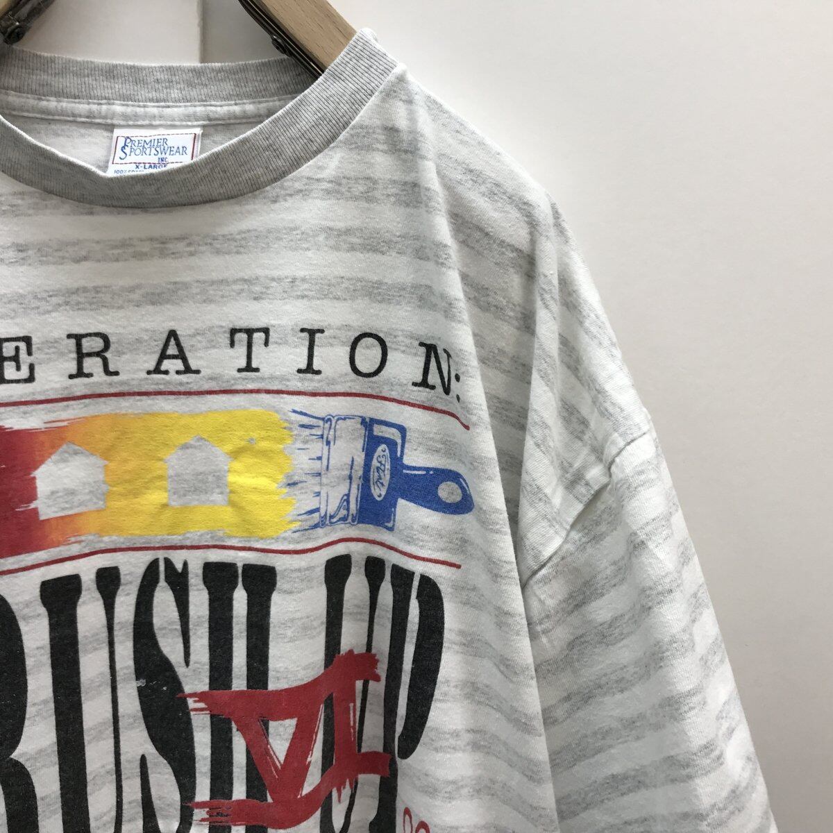 プレミア 90年代 USA製 白・アッシュグレー マリンボーダー 両面プリント入り XL