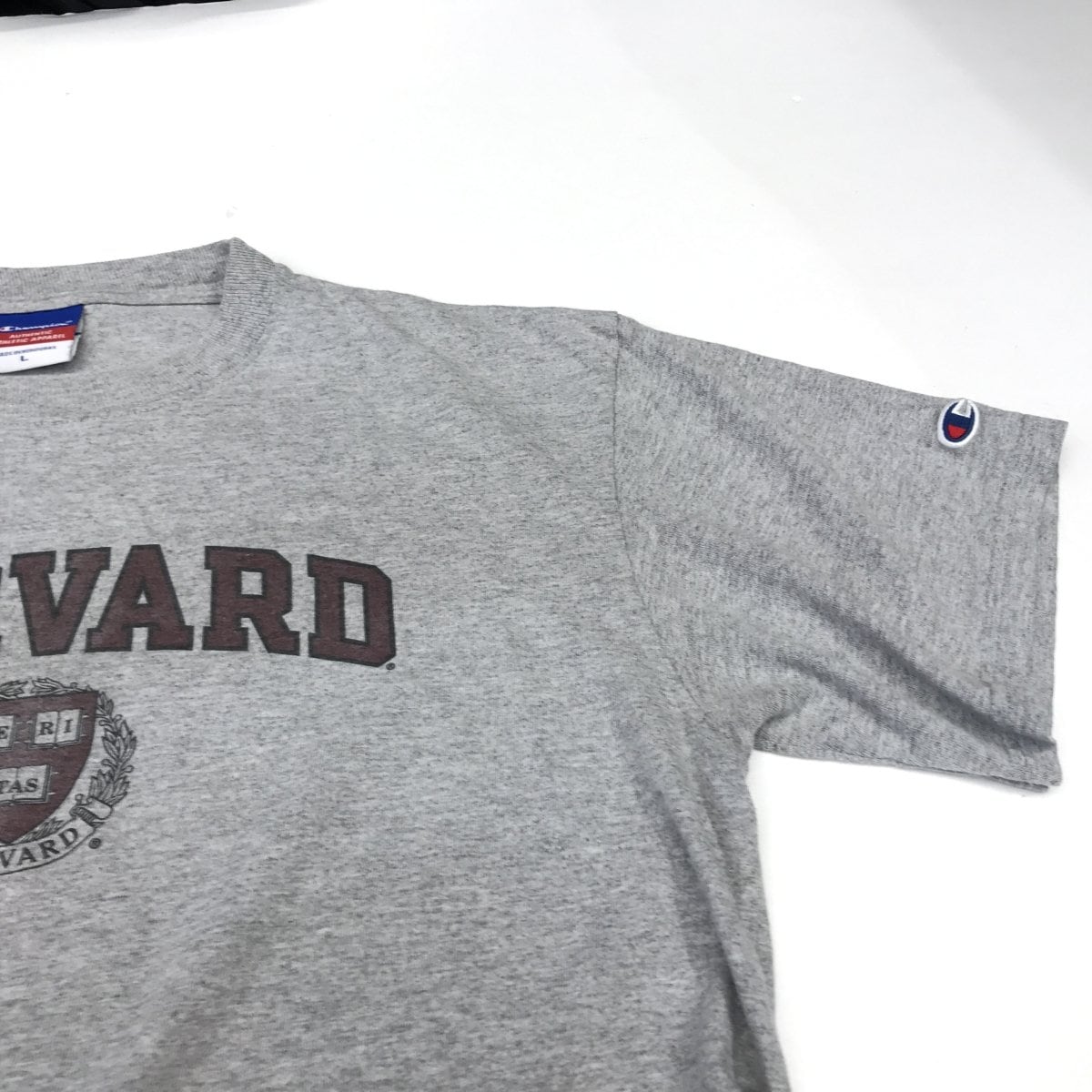 チャンピオン 90〜00年代 HARVARD ハーバード大学 カレッジプリント 半袖Tシャツ アッシュグレー 袖目C 刺繍入り L