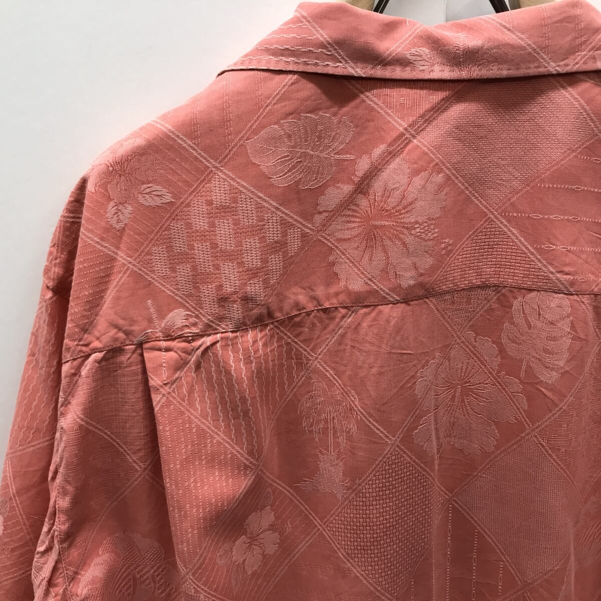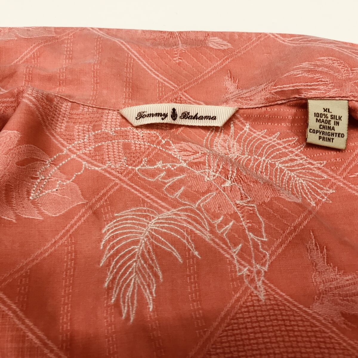 TOMMY BAHAMA トミーバハマ シルクシャツ ボタニカル織柄 アロハシャツ ハワイアンシャツ シャーベットオレンジ オープンカラーシャツ XXL