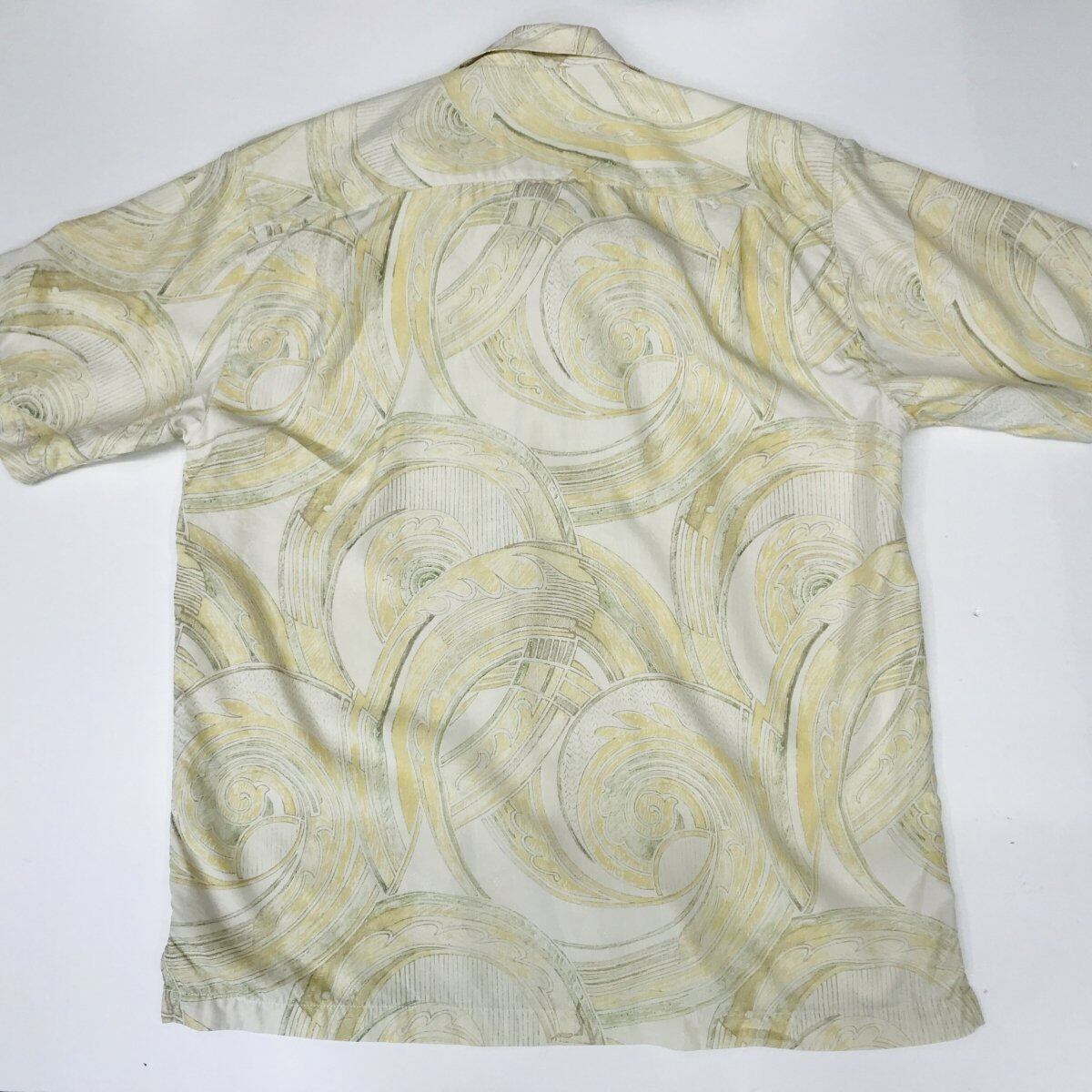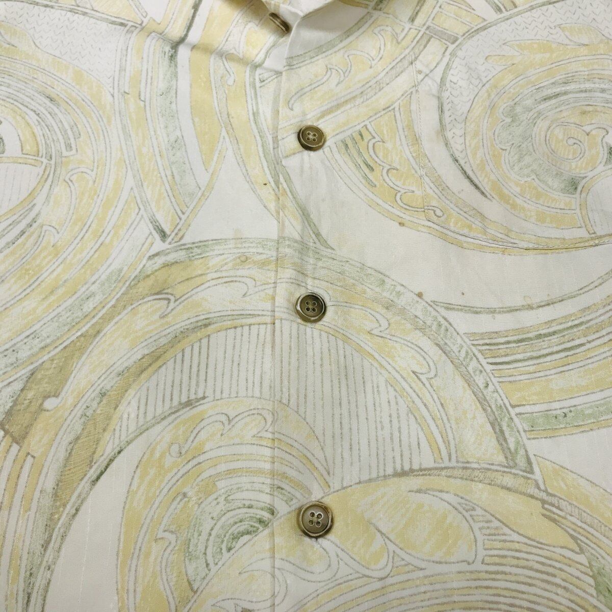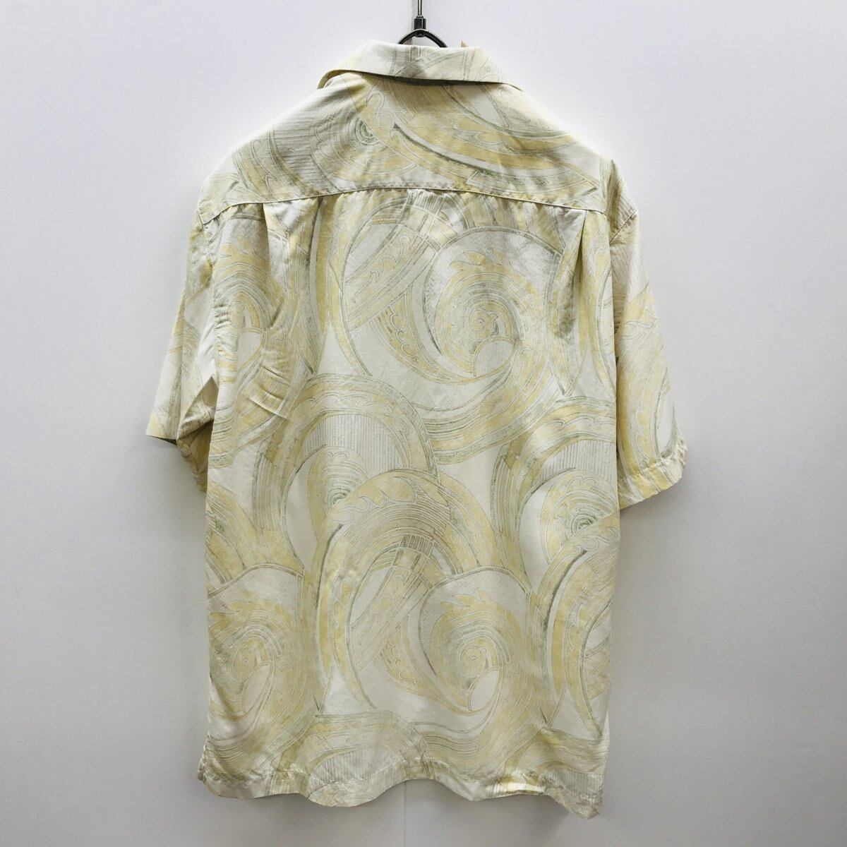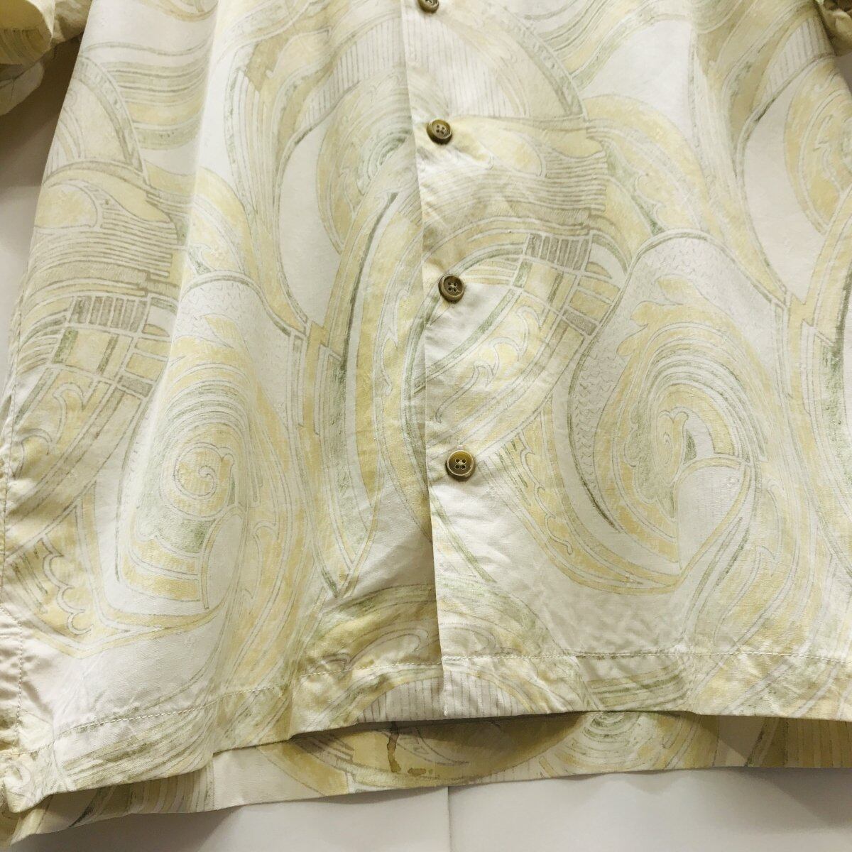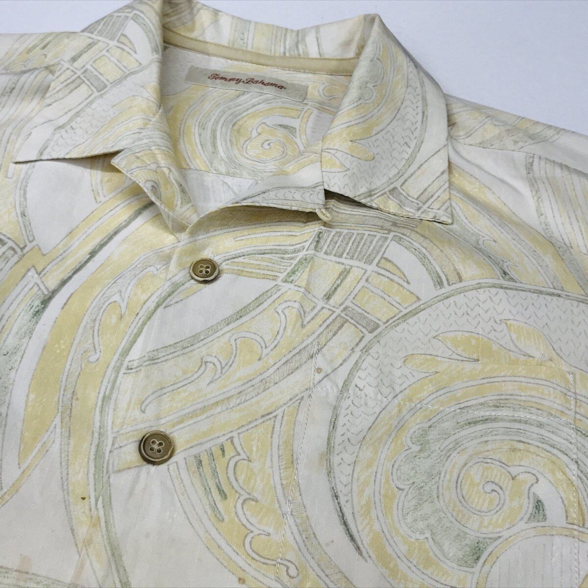 [SALE] TOMMY BAHAMA トミーバハマ シルクシャツ トライバル柄 アロハシャツ ハワイアンシャツ クリームイエロー オープンカラーシャツ XL