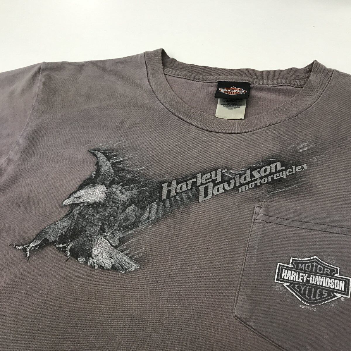 [SALE] ハーレーダビッドソン 00年代 USA製 半袖 Tシャツ 両面プリント LAKELAND FLORIDA フライングイーグルドローイングデザイン グレー L