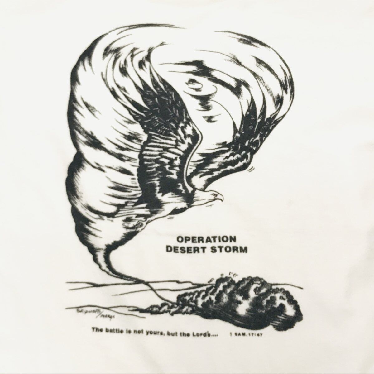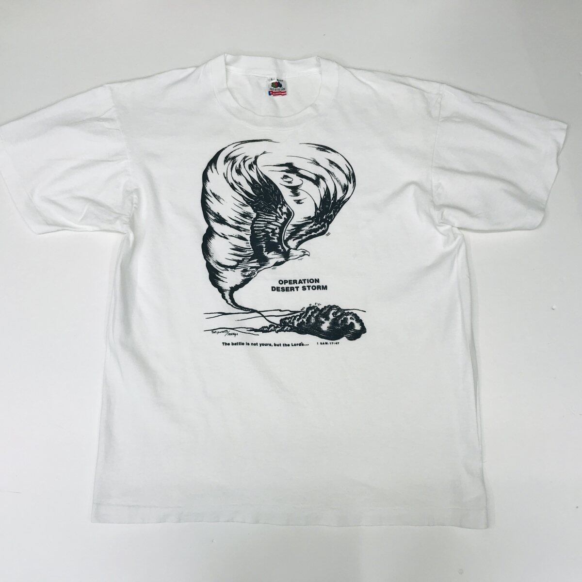 フルーツオブザルーム 90年代 USA製 OPERATION DESERT STORM レトロな単色プリント イーグル ホワイト ML