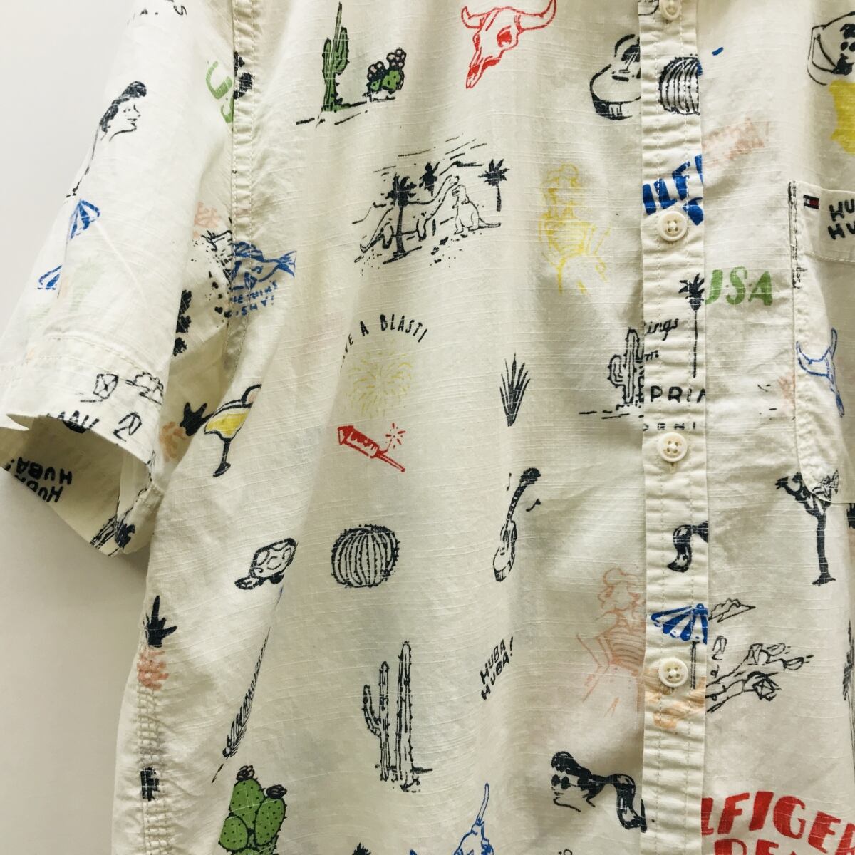 TOMMY HILFIGER DENIM トミーヒルフィガーデニム ポップ コミック 総柄半袖シャツ リバースプリント ガーゼ風 L