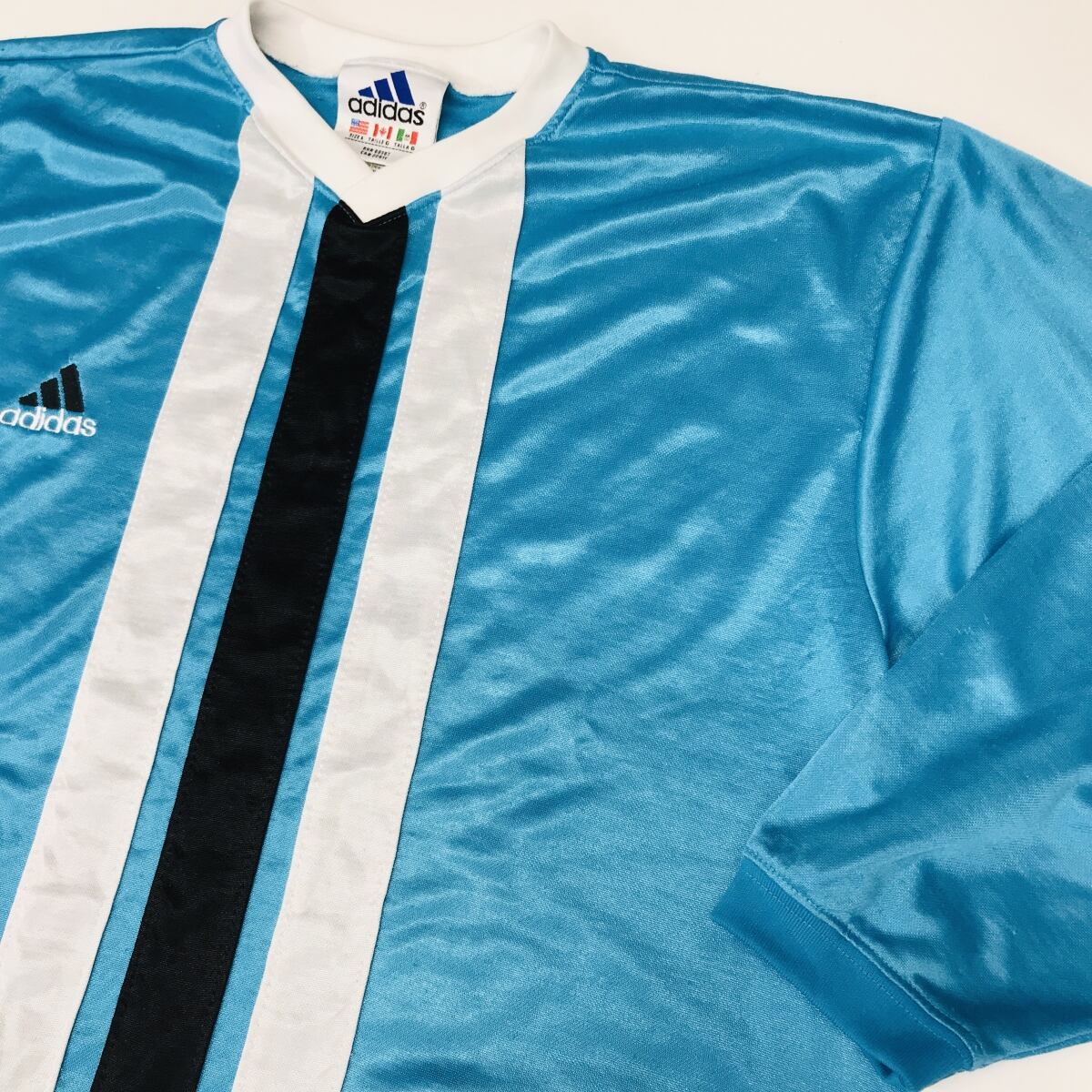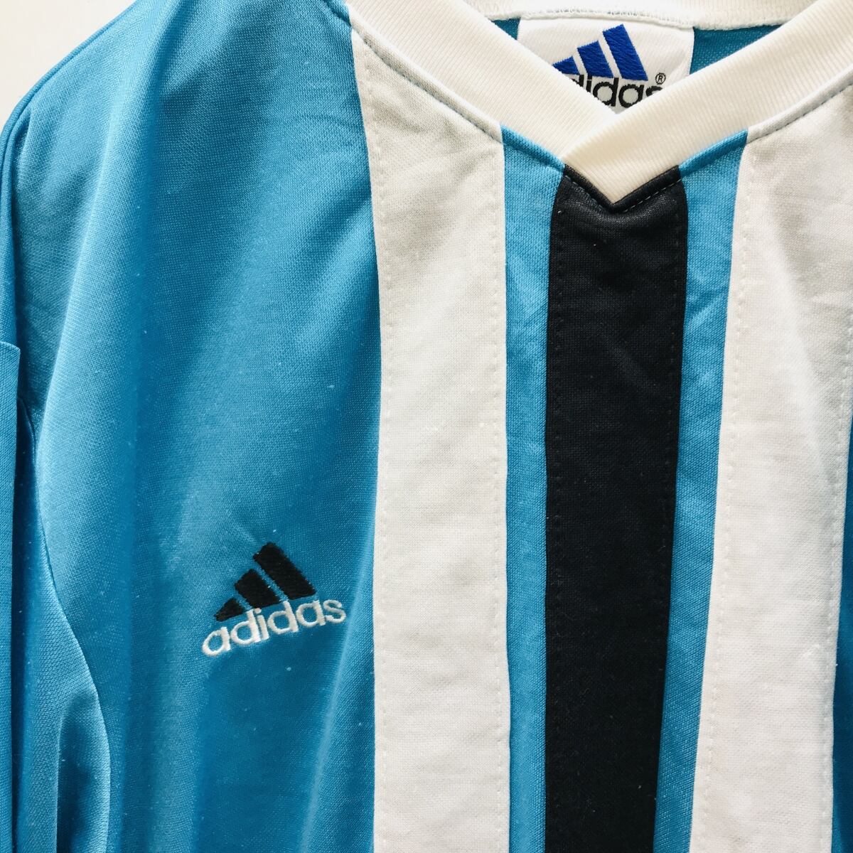 ADIDAS アディダス 90年代 USA製 万国旗タグ パフォーマンスロゴ 長袖シャツ 5分〜7分丈 サッカーキーパーシャツ ソーダブルー L