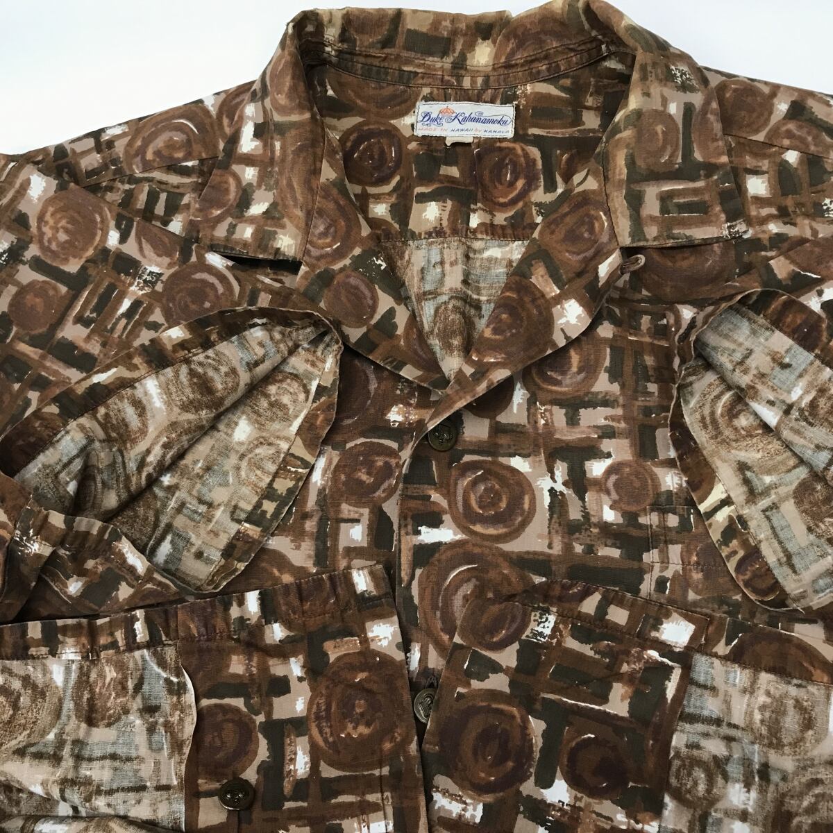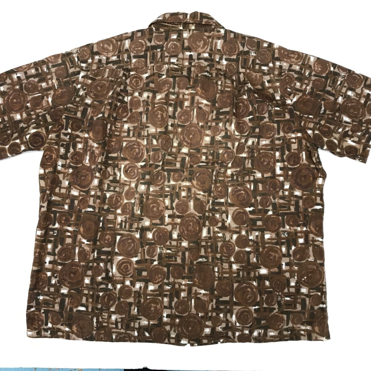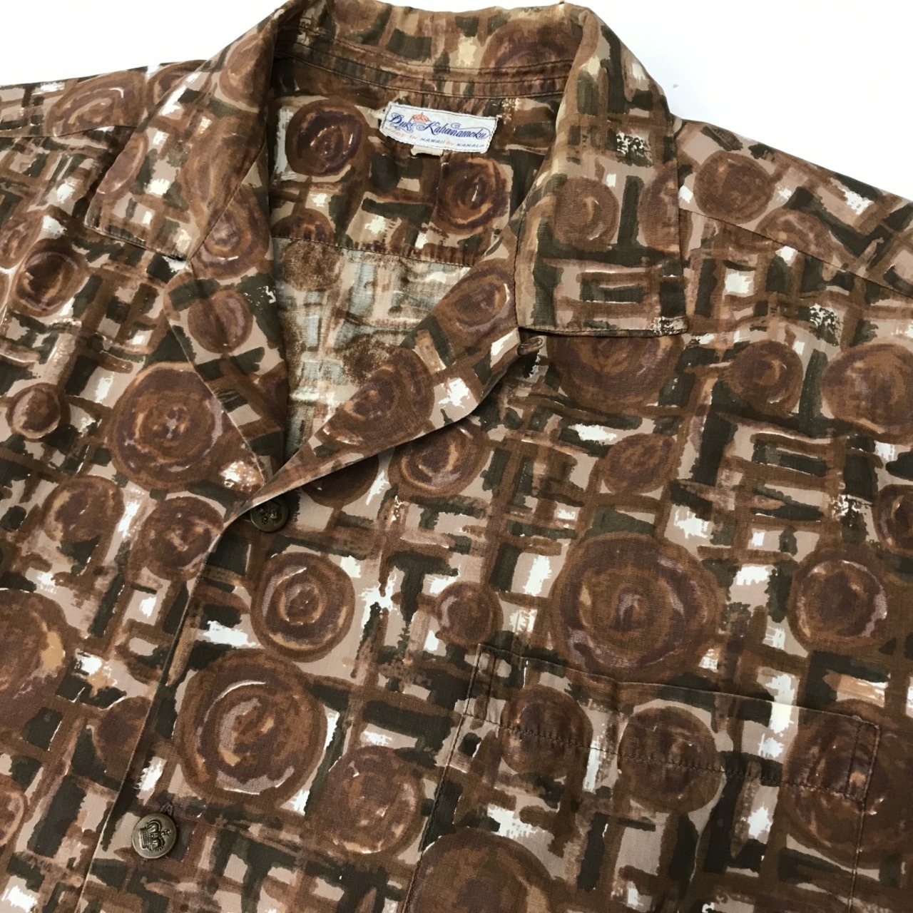 DUKE KAHANAMOKU デュークカハナモク 60年代 コットンアロハシャツ 油絵ドローイング調柄 ブラウン系 XXL
