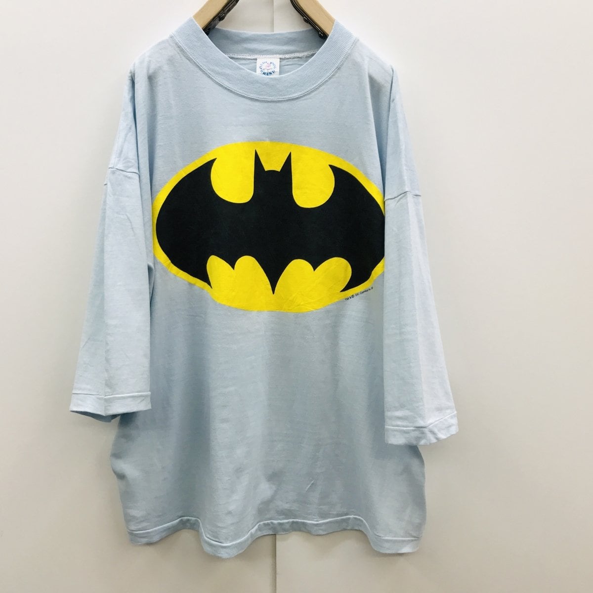 ルードドッグブランド 80〜90年代 ミドルネック 5分丈?フットボールTタイプ バットマン ビッグロゴ 半袖 Tシャツ サックスブルー XXL ペアルックにも!