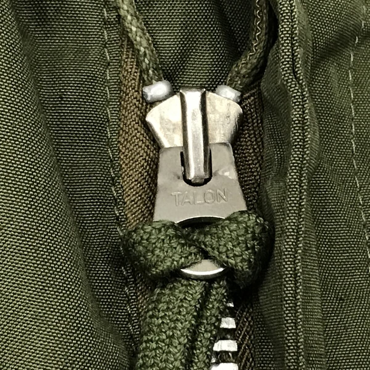 ファスナーはTALONのうつくしい扇形のアルミジッパー搭載で