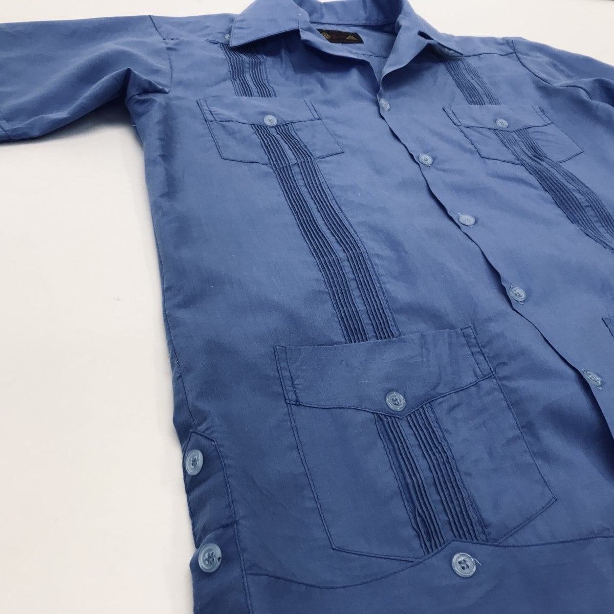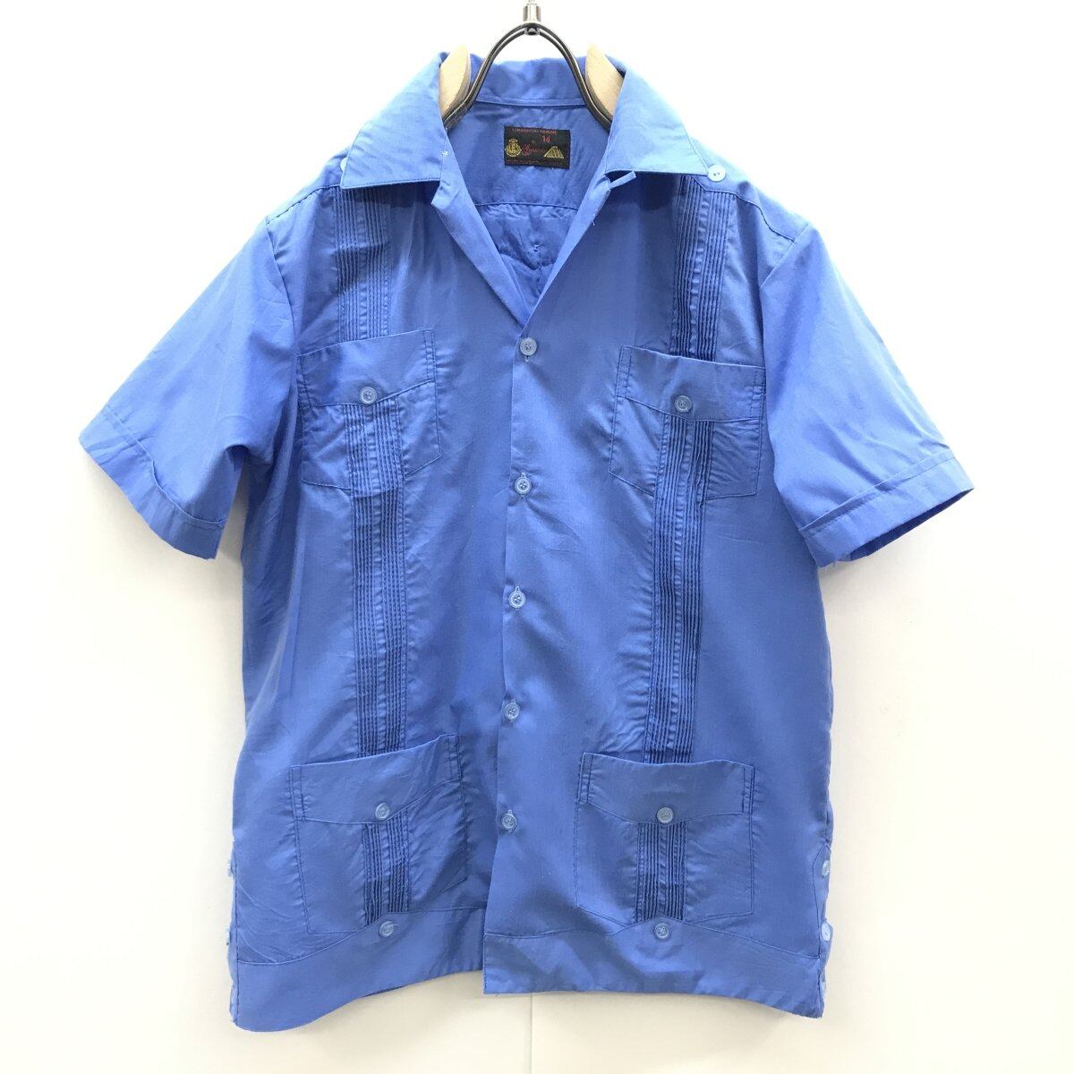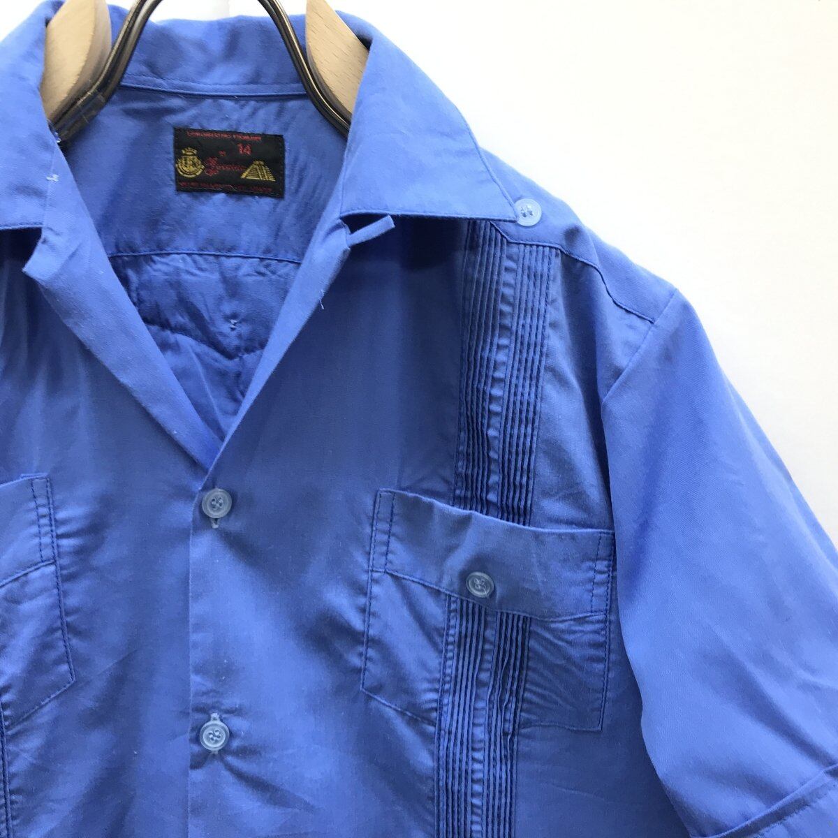 ユカタン 60〜70年代 半袖 ビンテージ キッズキューバシャツ 子供服 GYAYABERA SHIRTS 濃いサックスブルー 親子ペアで