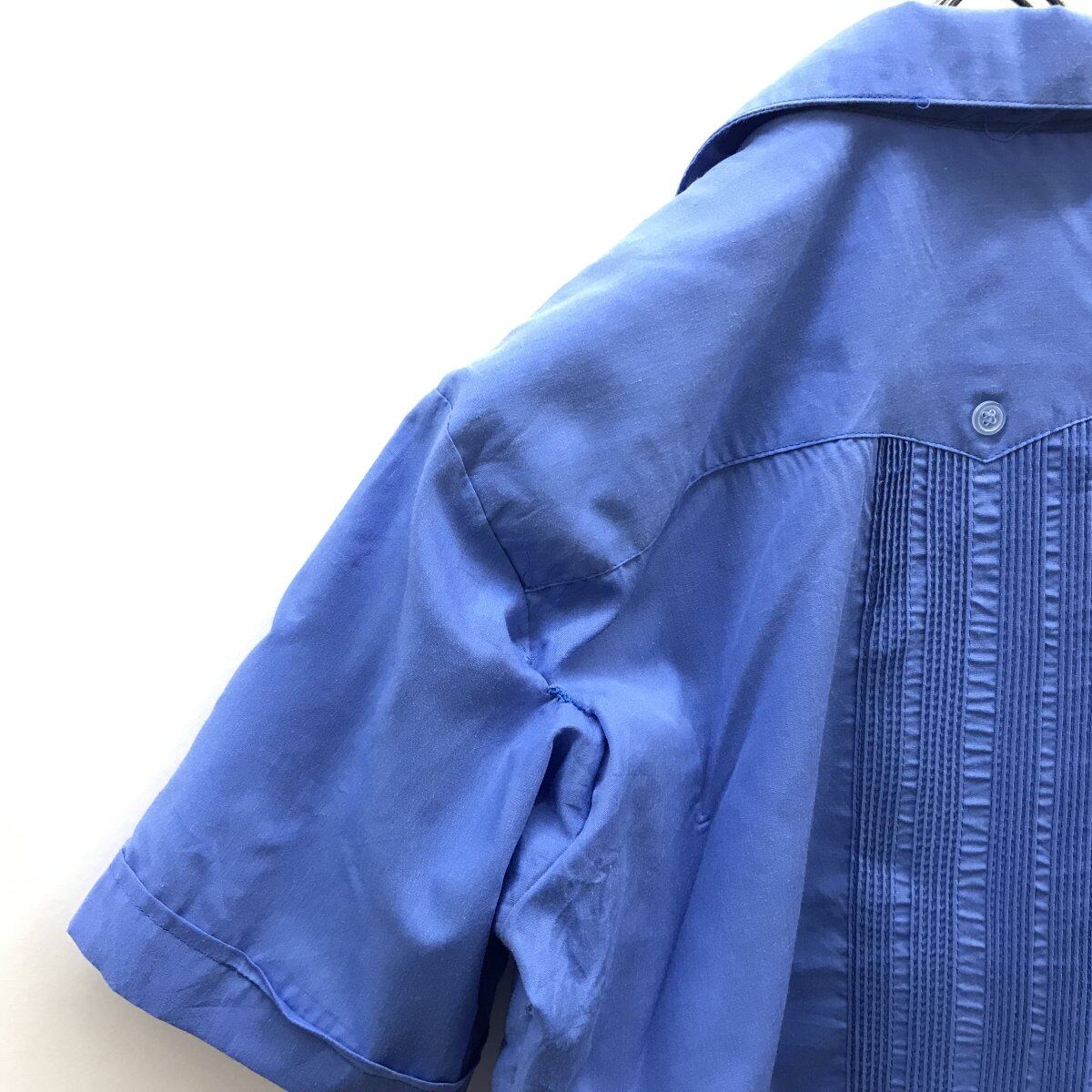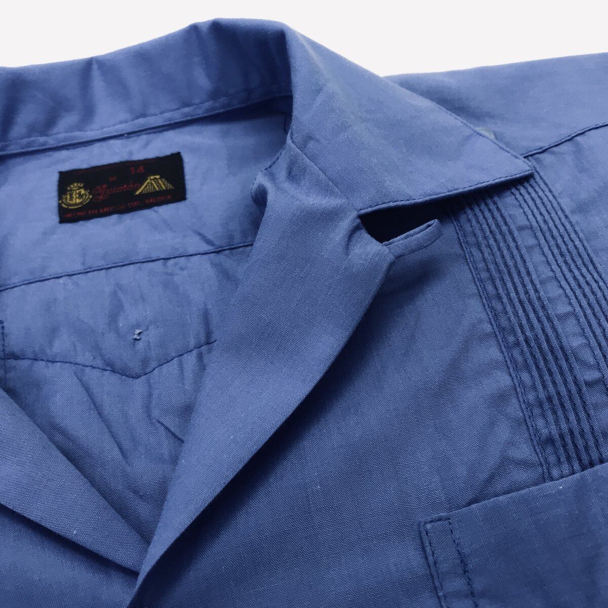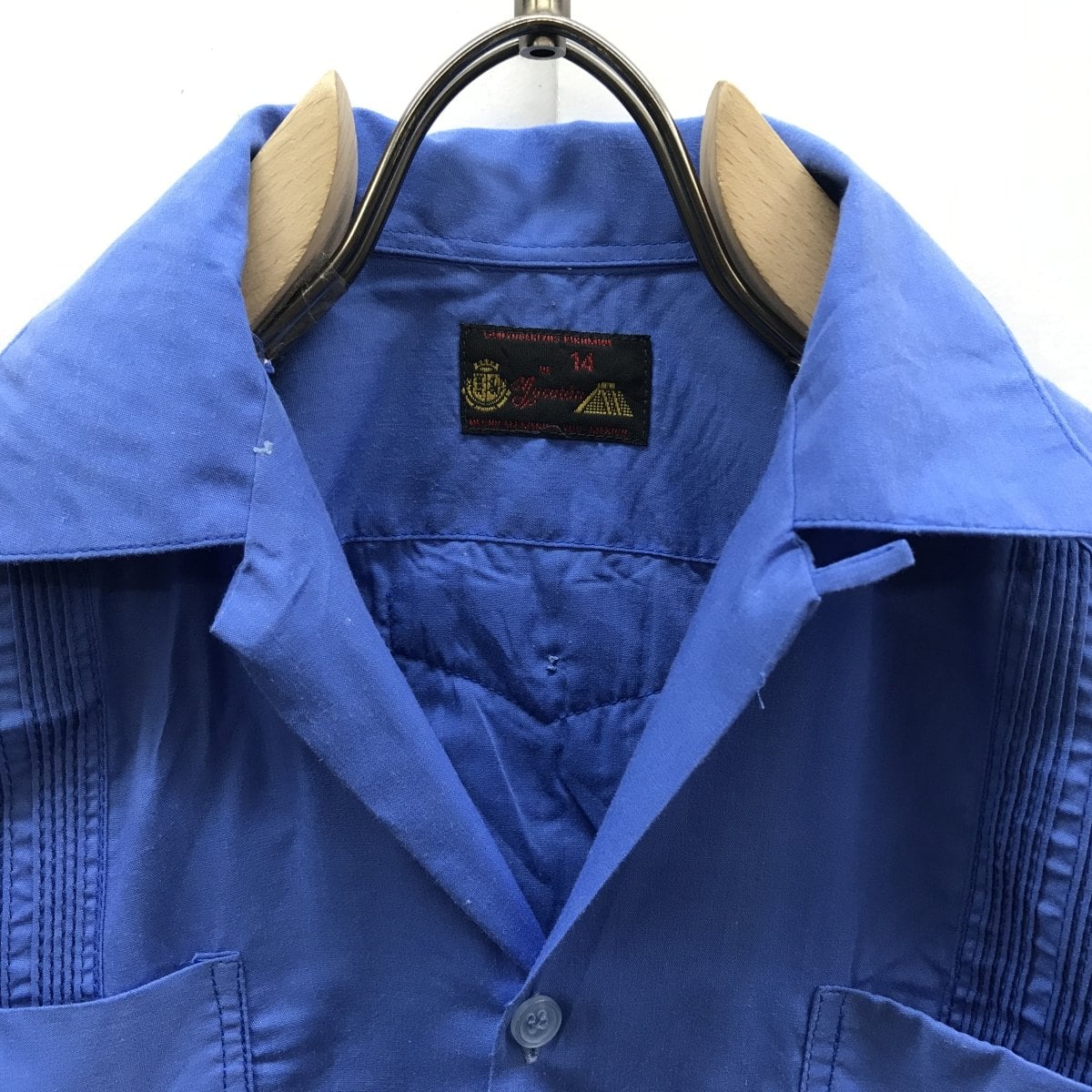 ユカタン 60〜70年代 半袖 ビンテージ キッズキューバシャツ 子供服 GYAYABERA SHIRTS 濃いサックスブルー 親子ペアで