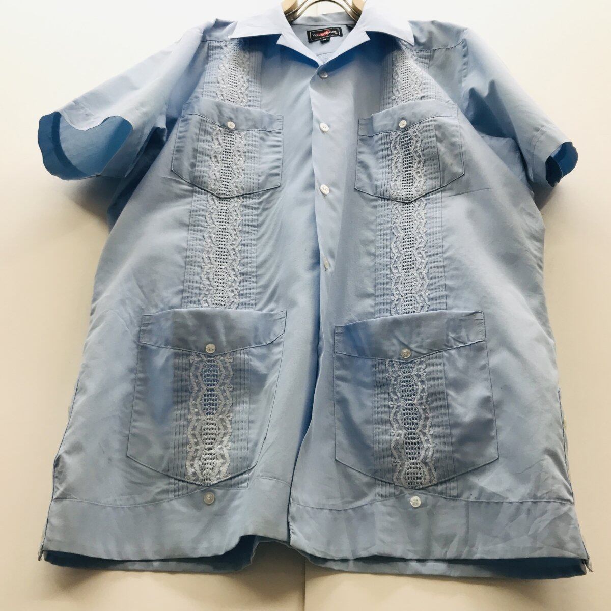 ヤングブラッズ 80〜90年代 刺繍 半袖キューバシャツ GYAYABERA SHIRTS アイズブルー ML