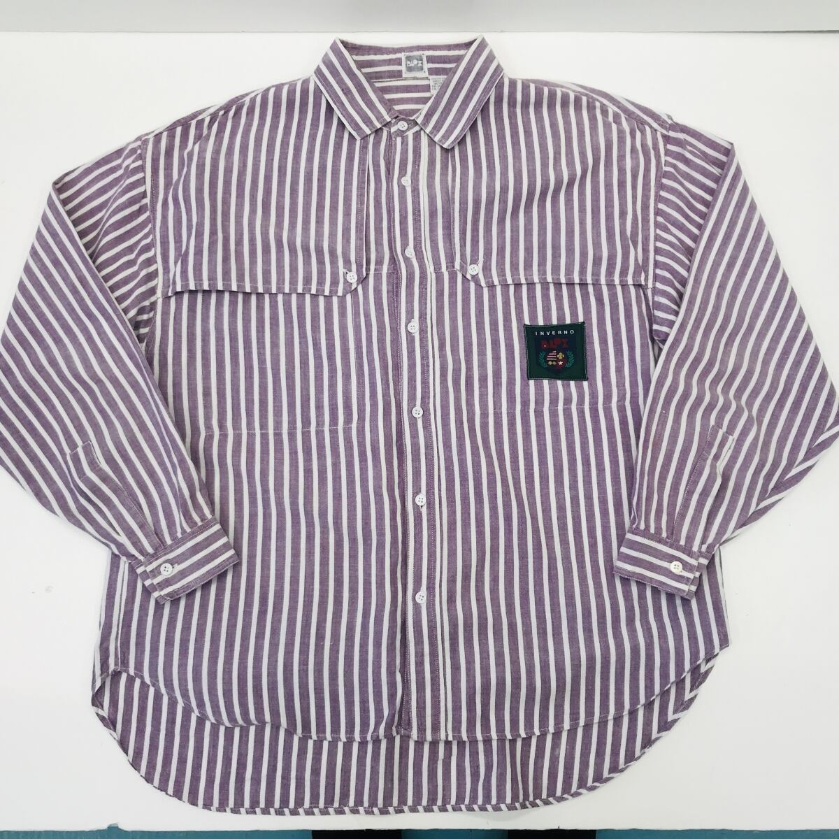 BLOX ブロックス 80〜90年代 長袖 80's 比翼デザインシャツ オックスフォード風ストライプシャツ ライトパープル XL