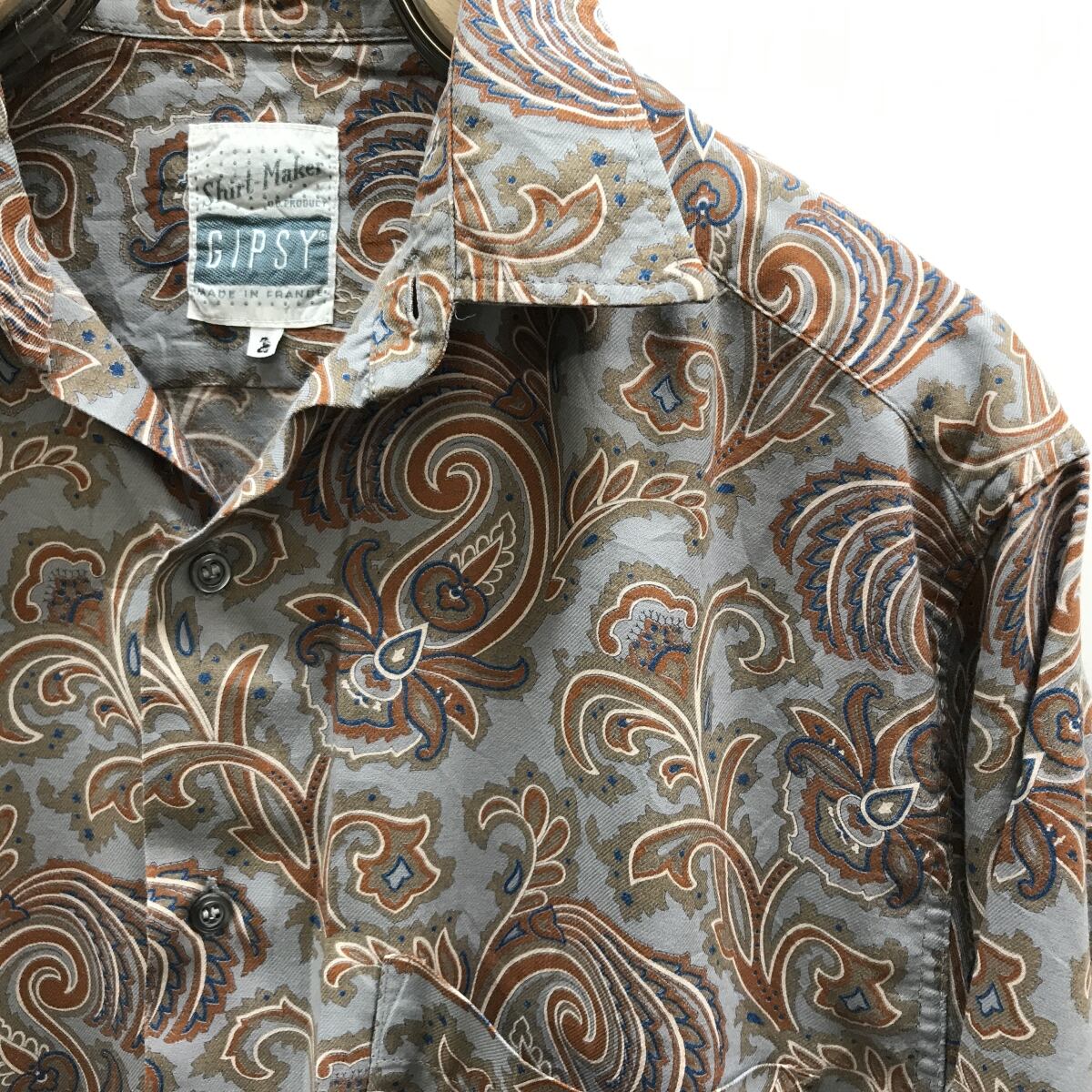 GIPSY SHIRT MAKER ジプシー 70〜80年代 フランス製 ユーロビンテージ ペイズリー柄 長袖総柄シャツ ブルーグレー L