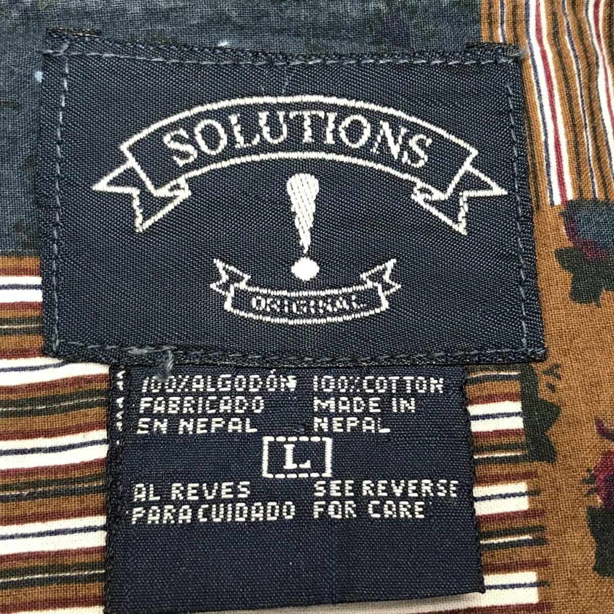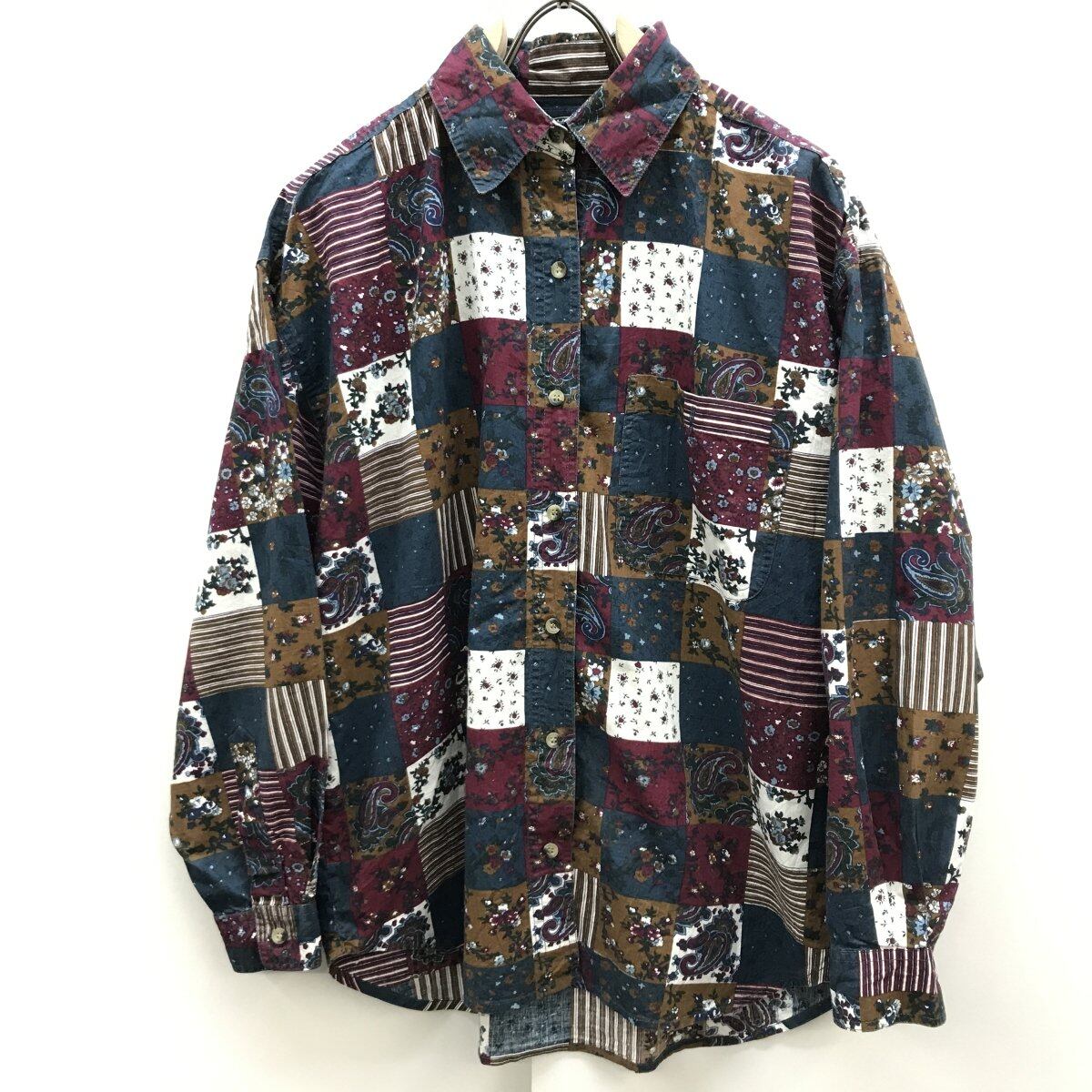 SOLUTIONS ソルーションズ 80〜90年代 長袖パッチワーク風 シャツブラウス ペイズリーとお花 L