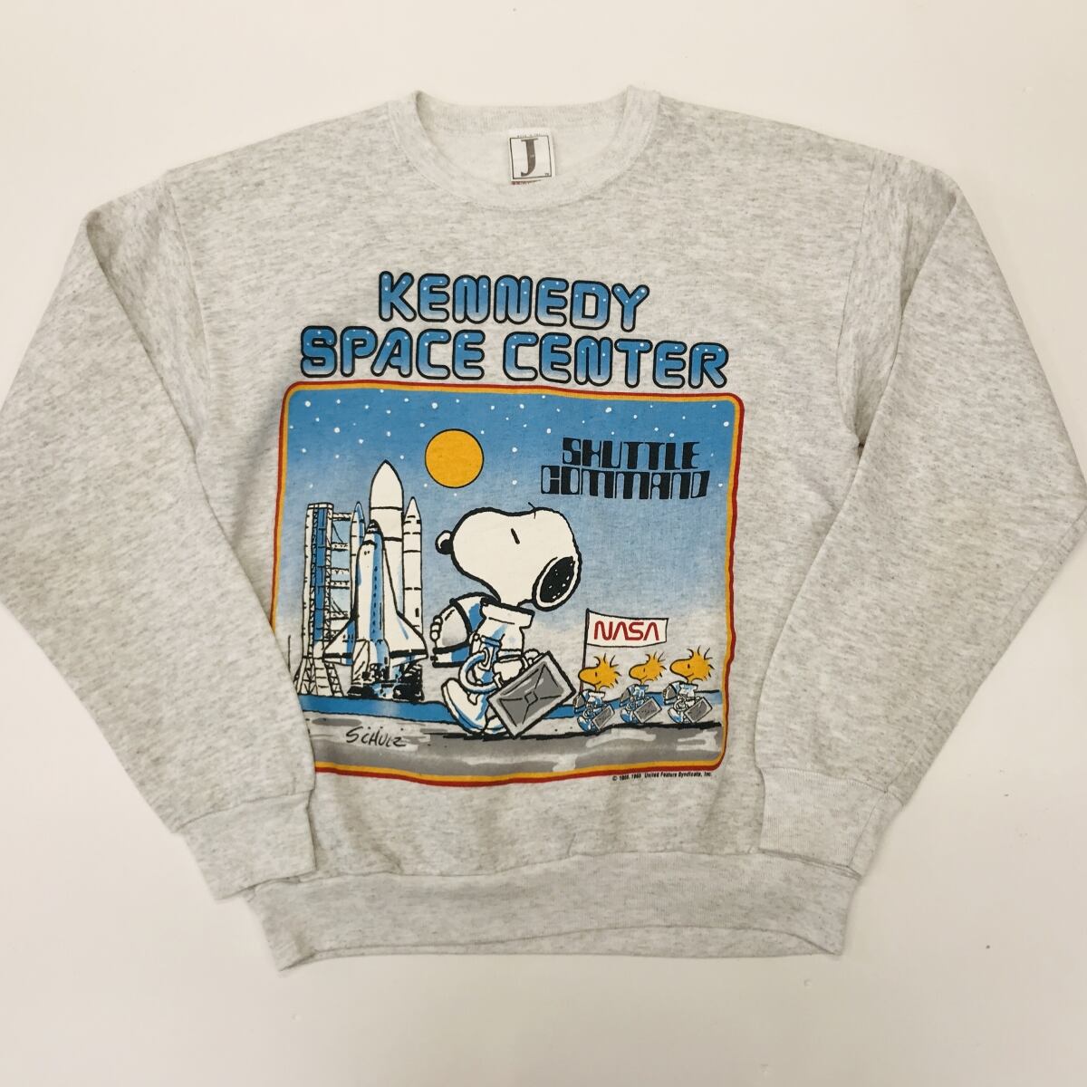 JOSTENS SPORTS WEAR ジャスティンズ 80〜90年代 USA製 ケネディー宇宙センター スヌーピーとウッドストック プリントスウェット アッシュグレー L