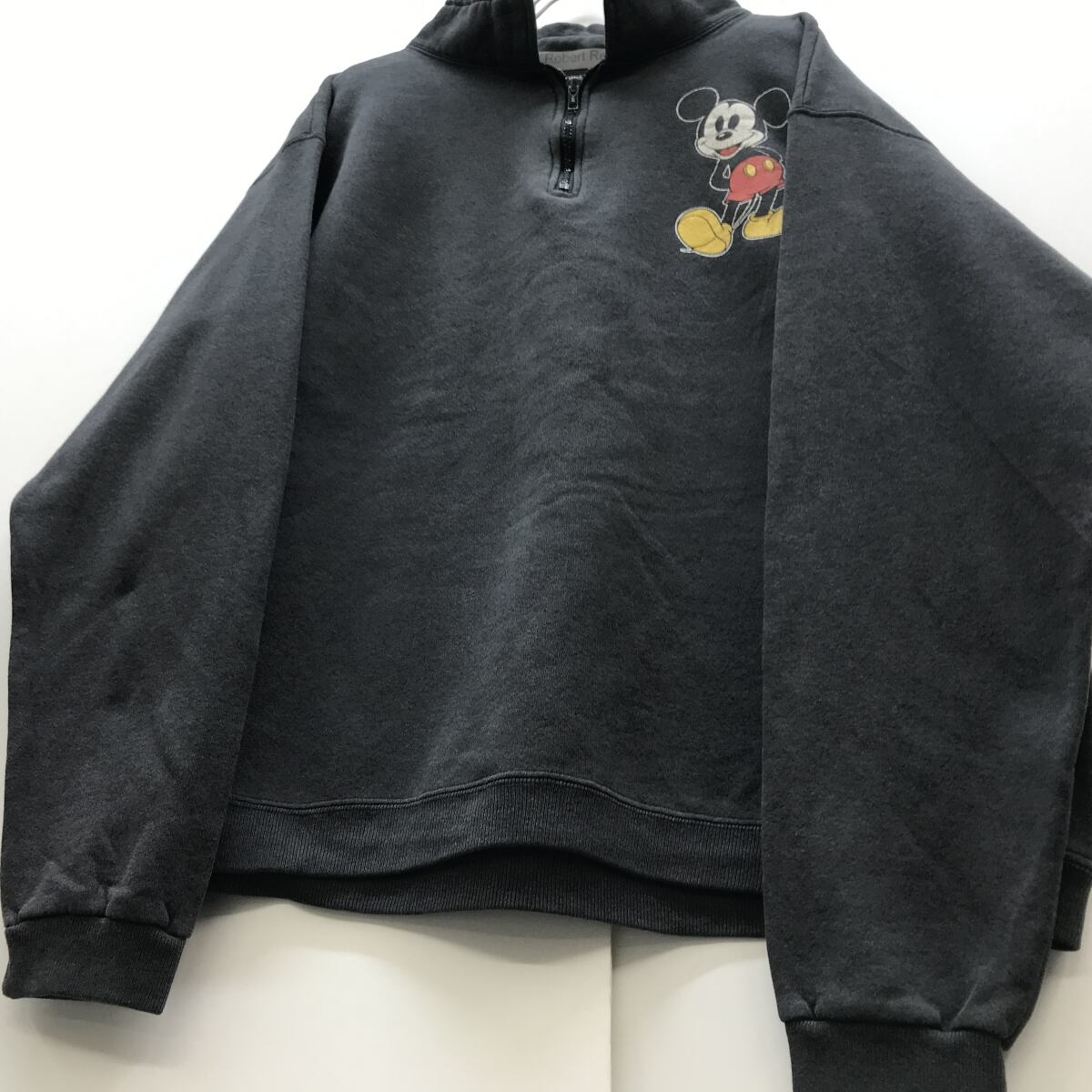 DISNEY DESIGNS ディズニーデザインズ USA製 ミッキーワンポイントプルオーバースウェット ハーフジップスウェットブラック L