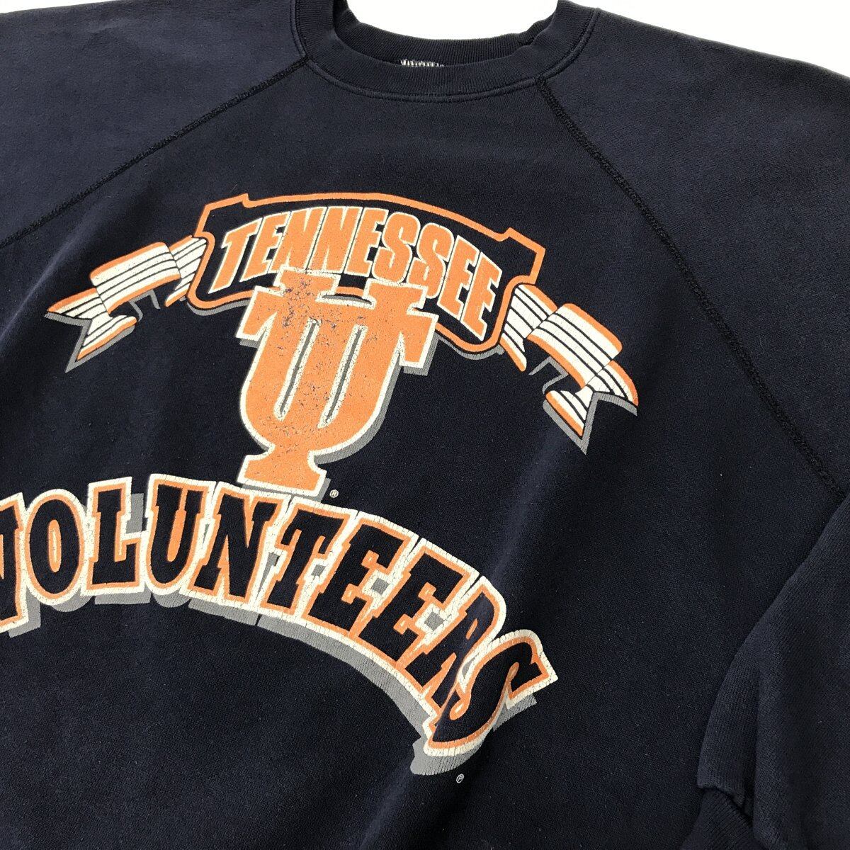 JOSTENS ジャスティンズ 80〜90年代 USA製 TENESSEE UNIVERSITY ボランティアーズ カレッジプリント ラグランスウェット ネイビー 3XL ビッグサイズ!