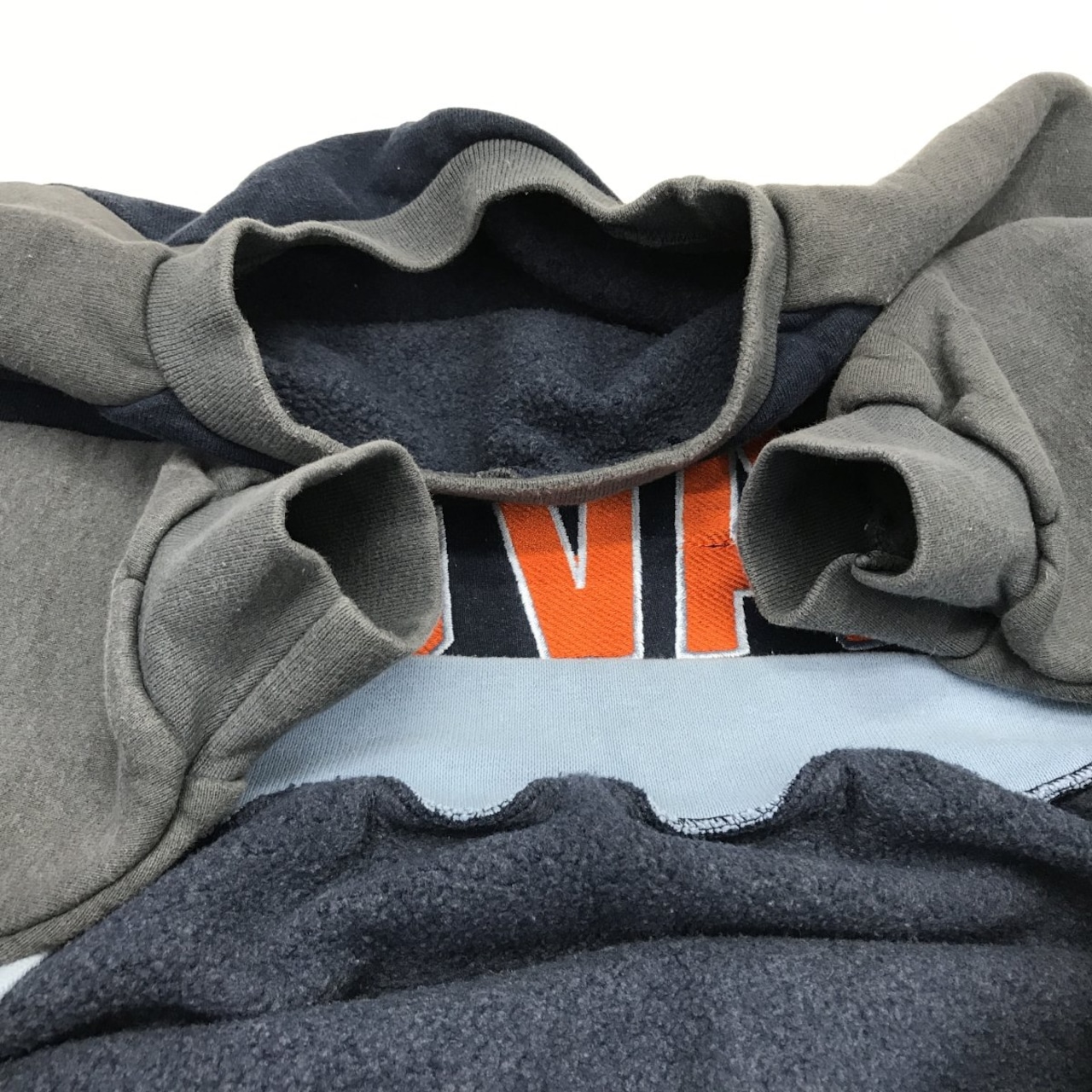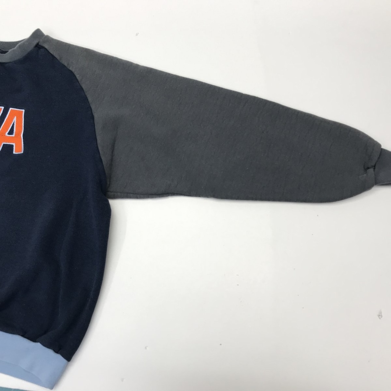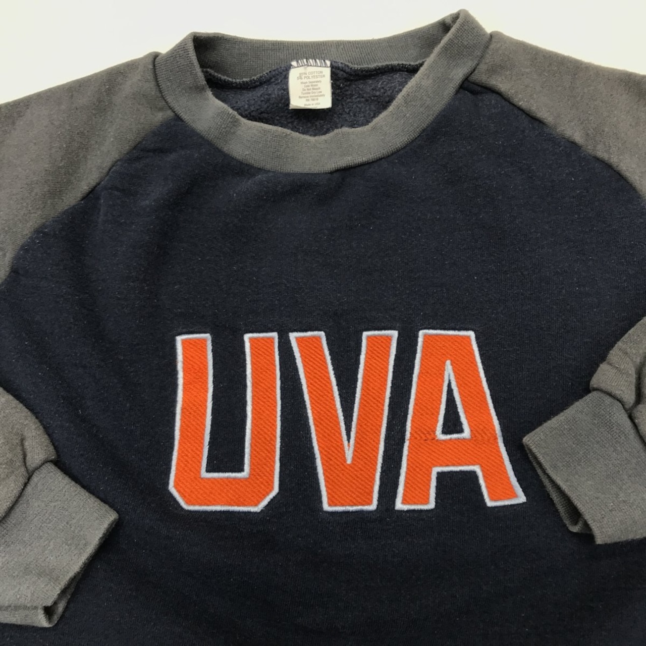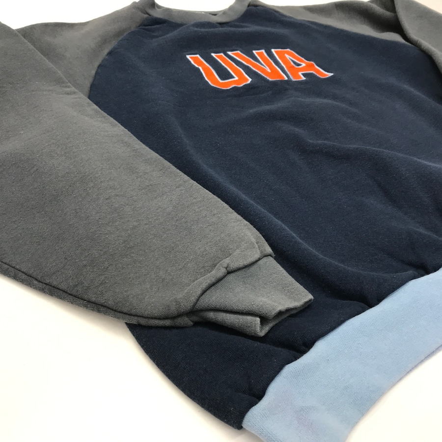 USED ユーズド 80〜90年代 RN76619 ヘビーコットン 長袖ラグランスウェット 3色切り替え バージニア大学 ロゴ 刺繍入り XL