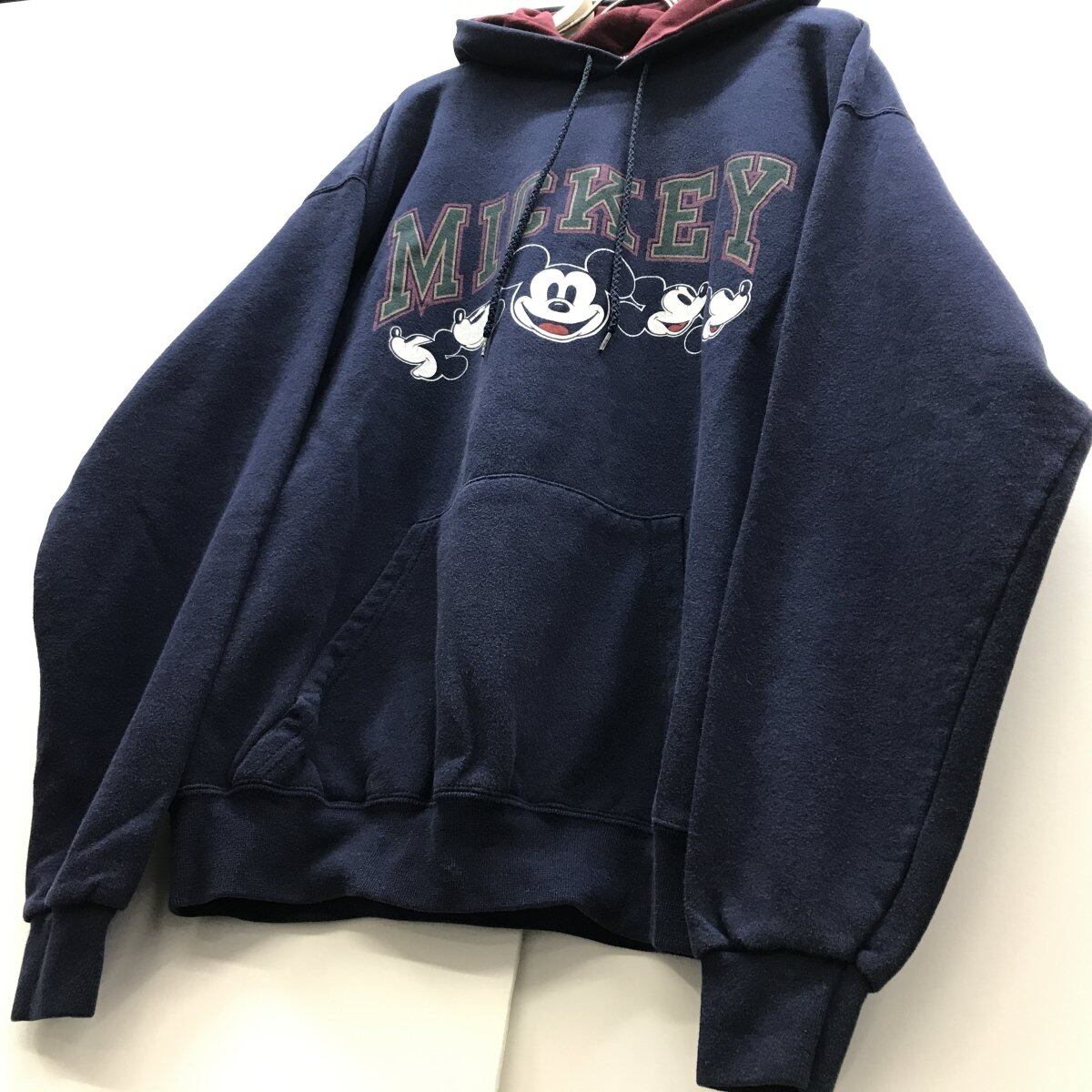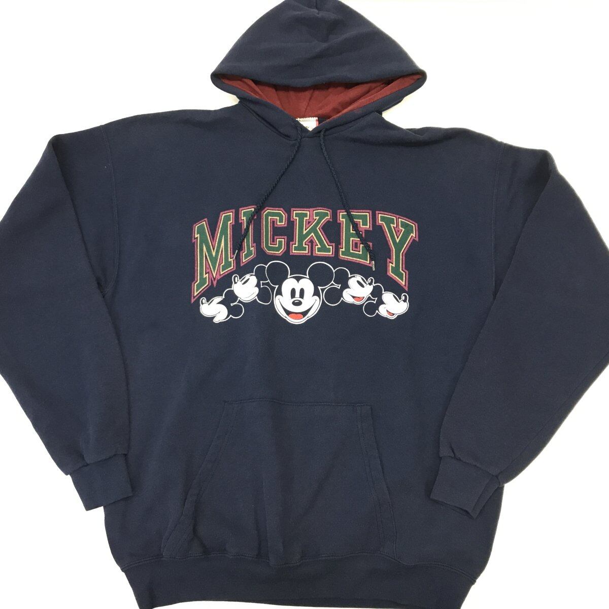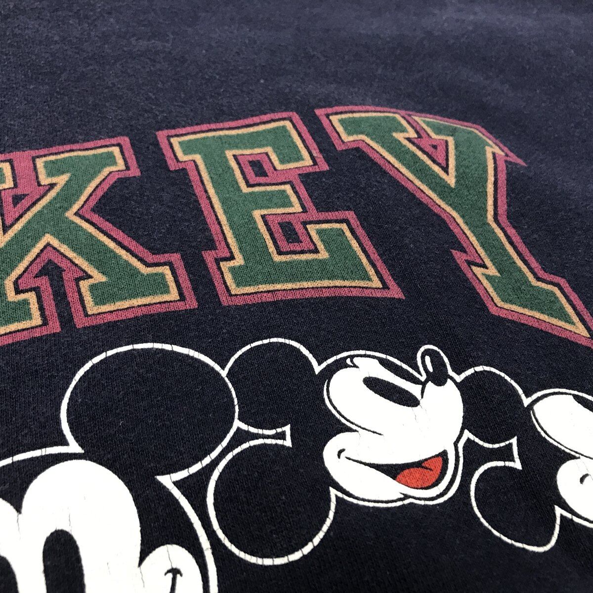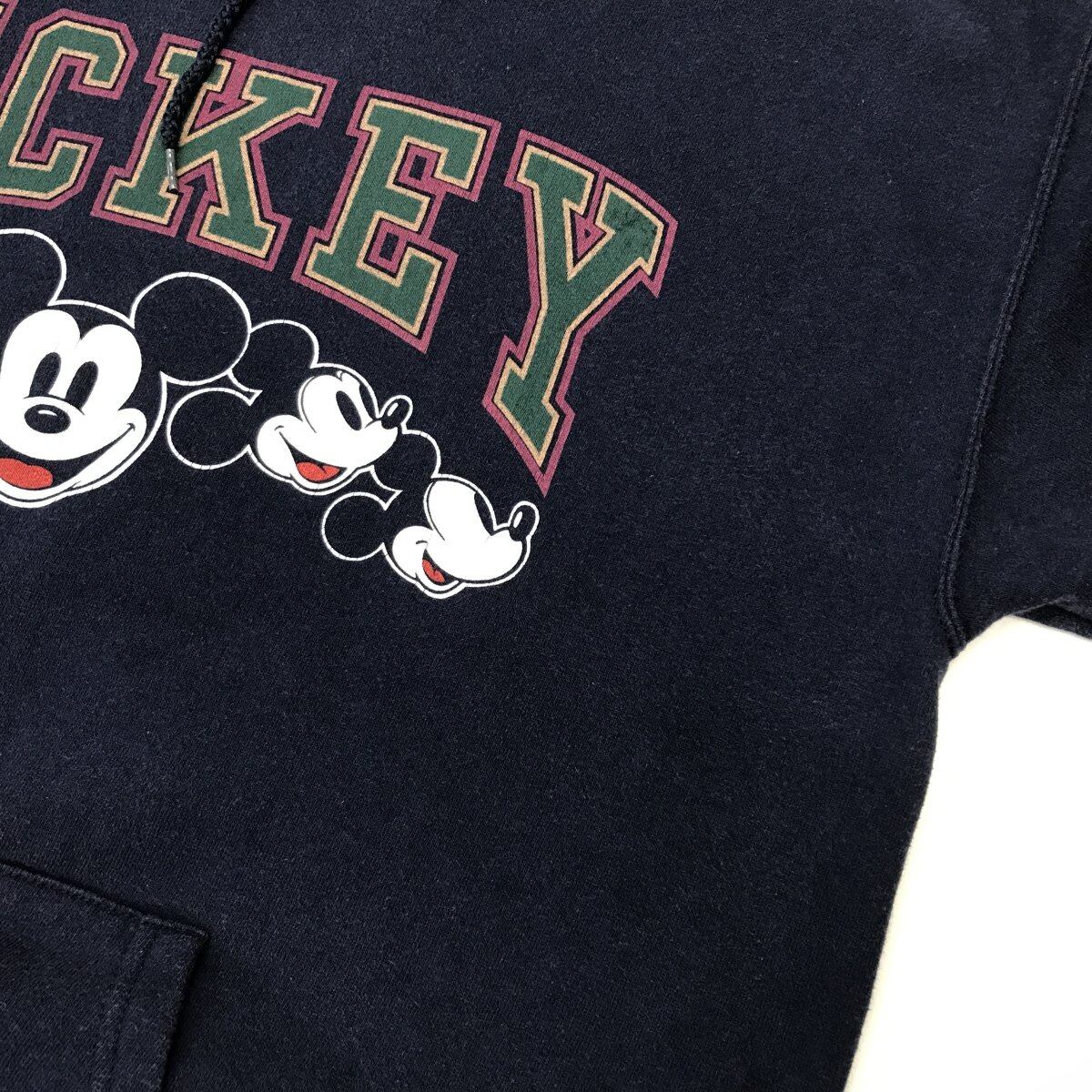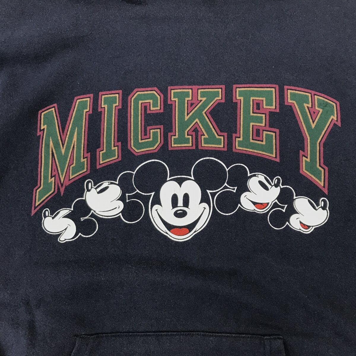 DISNEY DESIGNS ディズニーデザインズ 80〜90年代 USA製 ミッキーフェイス& 90's プレッピーロゴ 長袖プリントパーカー ネイビー XL
