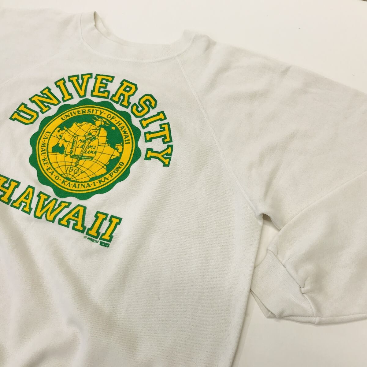HONOLULU TOP3 ホノルル 80〜90年代 ハワイ大学 長袖ラグランスウェット ホワイト XL