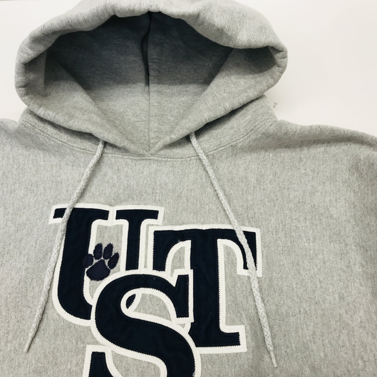 THE COTTON EXCHANGE コットンエクスチェンジ 80〜90年代 USA製 リバースタイプ UST カレッジロゴアップリケ入り 長袖スウェットパーカー アッシュグレー XL