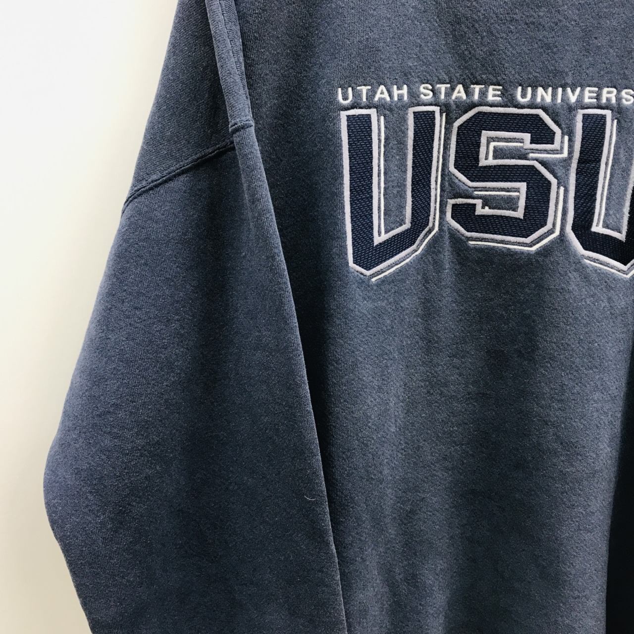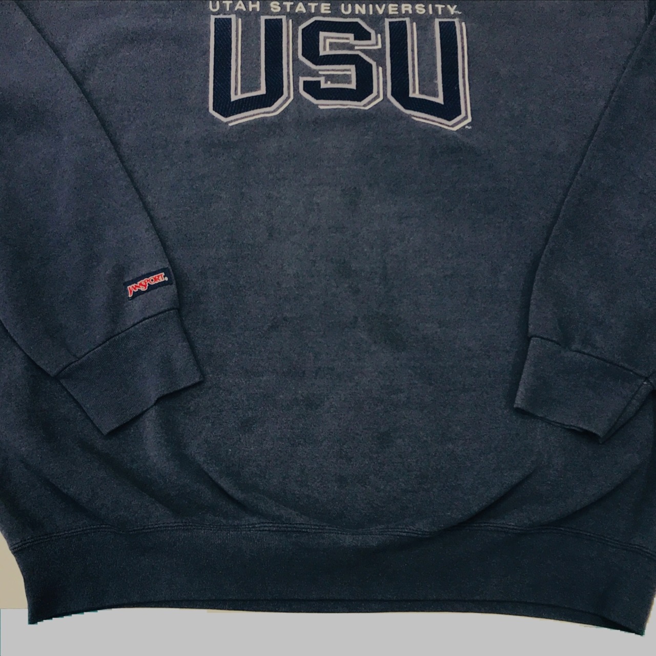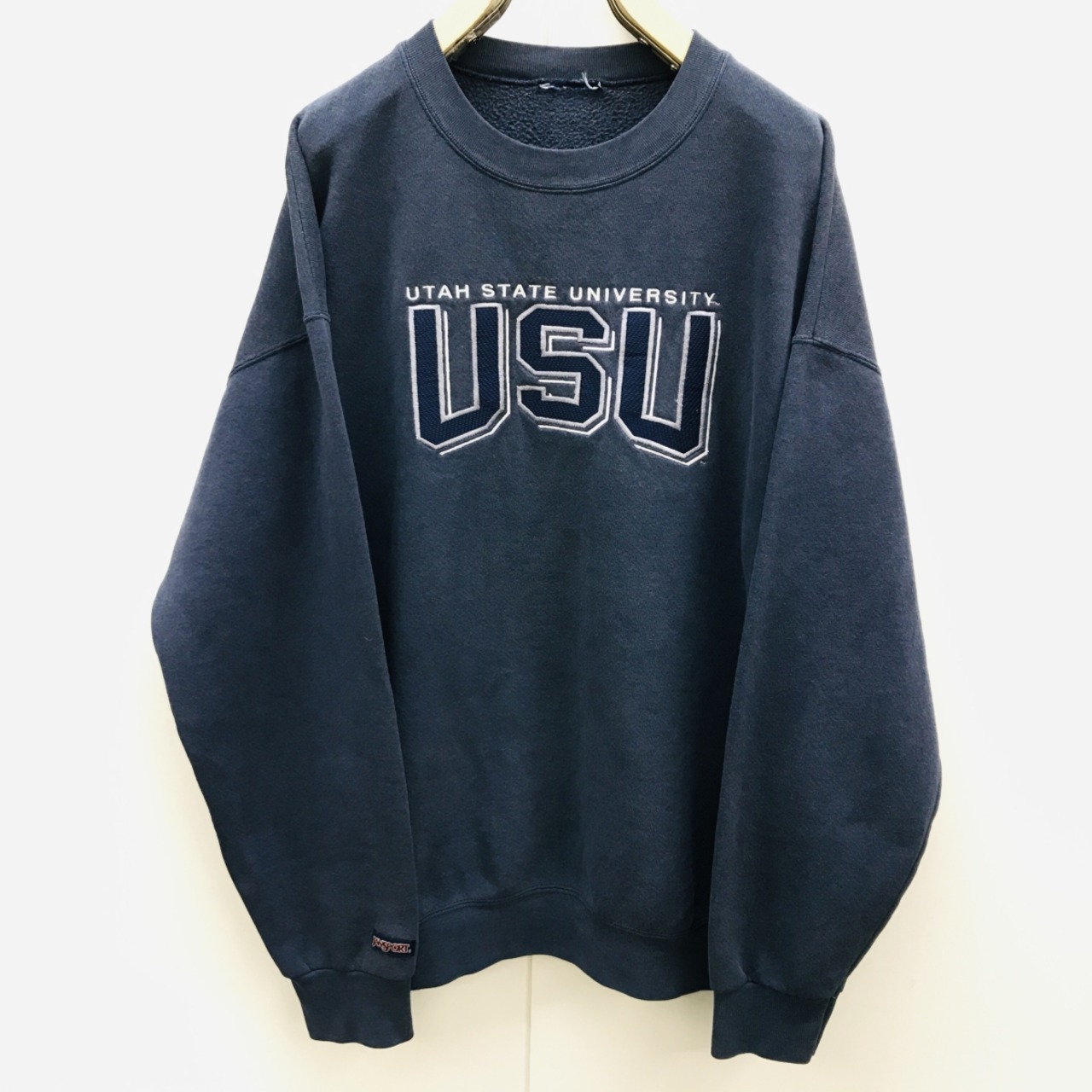 JANSPORT ジャンスポーツ 90年代 ユタ州立大学 ビッグロゴ 刺繍入り 長袖スウェット 色落ちネイビー 2XL相当