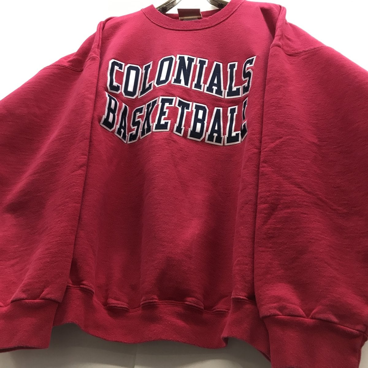 HANES ヘインズ 90〜00年代 COLONIALS BASKETBALL ビッグパッチアップリケ付き 長袖スウェット ピンクレッド XXL