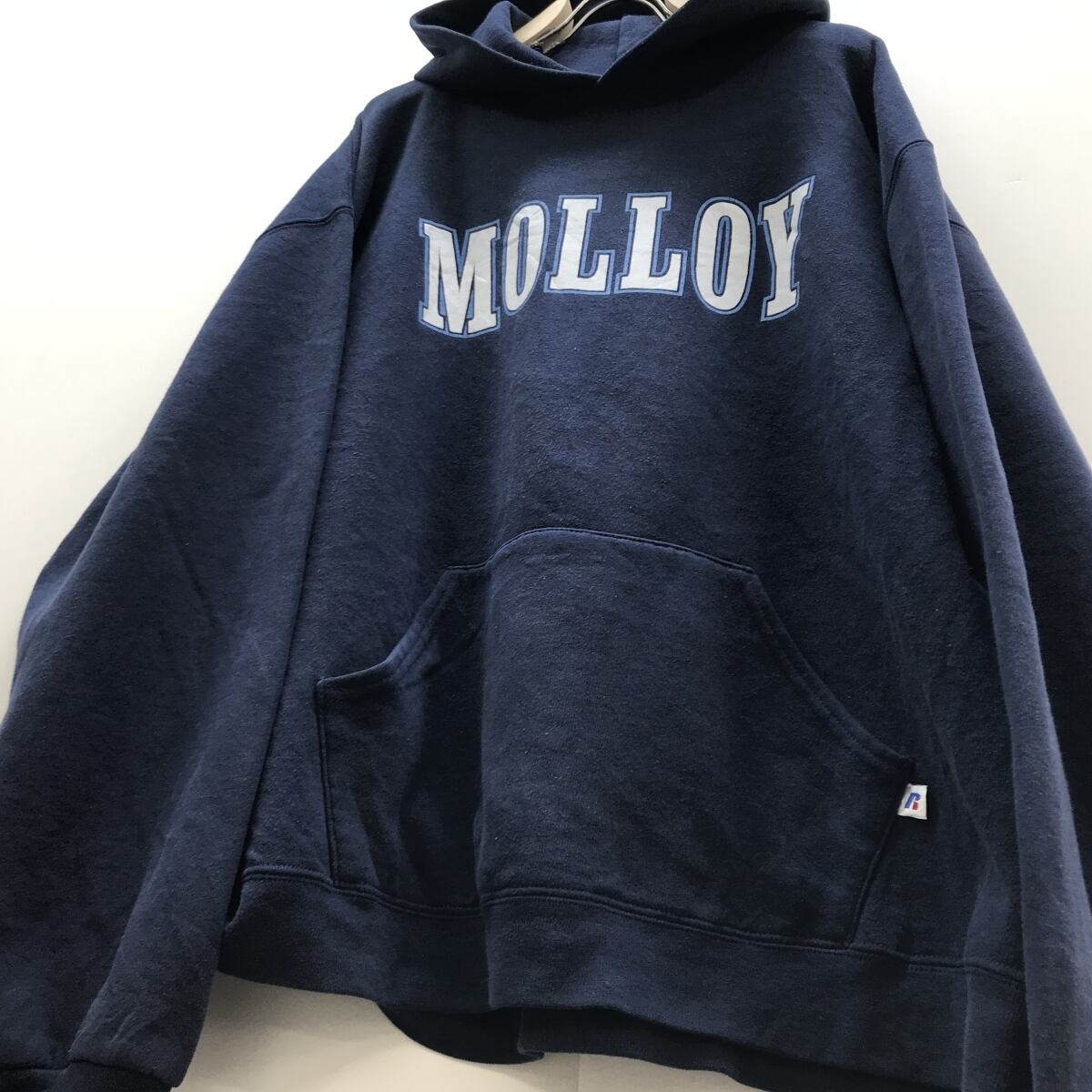 RUSSEL ATHLETIC ラッセルアスレチック 00年代 MOLLOY UNV.ロゴ 長袖スウェットパーカー プルオーバーフーディー ネイビー XL