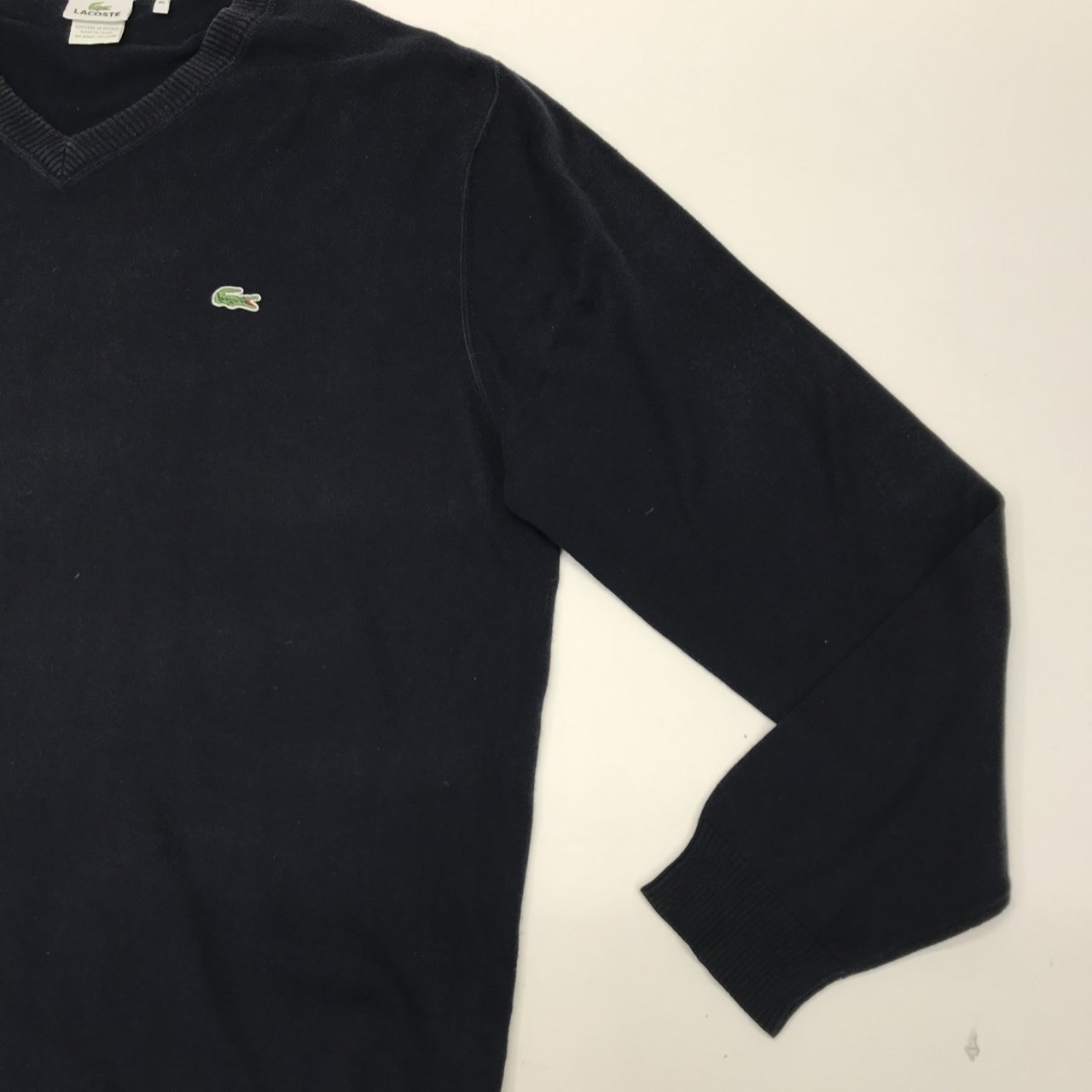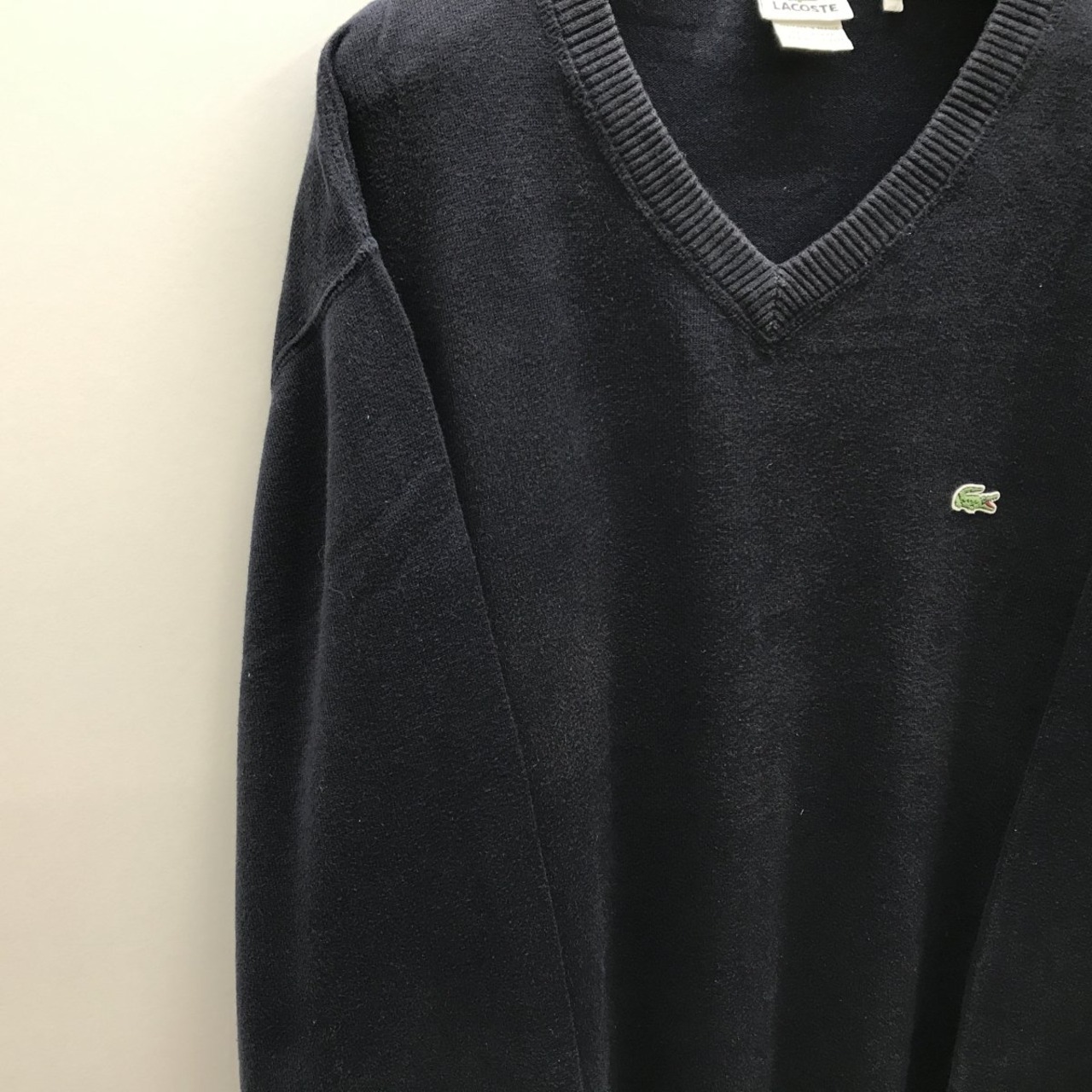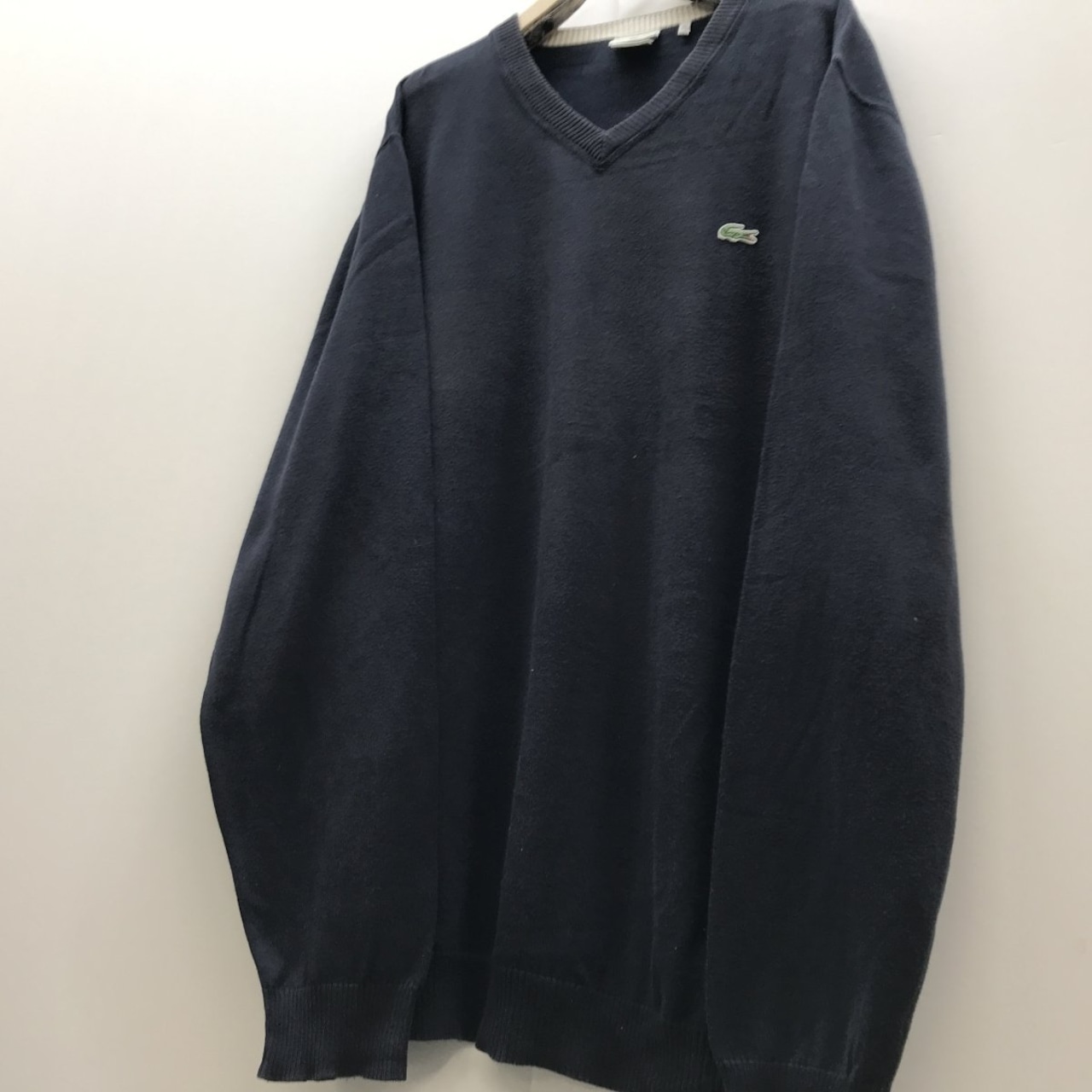 LACOSTE ラコステ 90年代 フランス企画 長袖 コットン Vネックセーター ダークネイビー 3XL以上 超・ビッグサイズ!