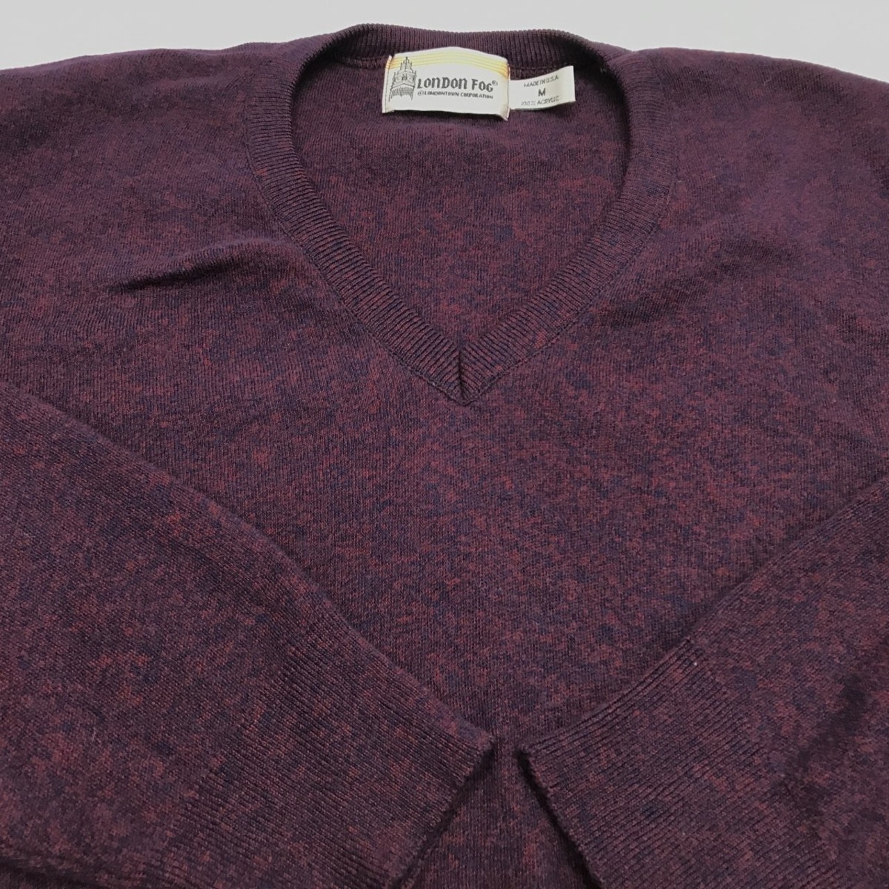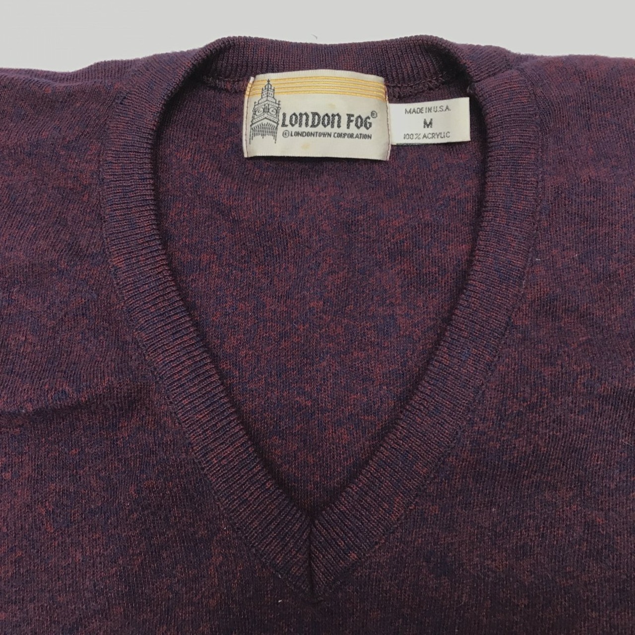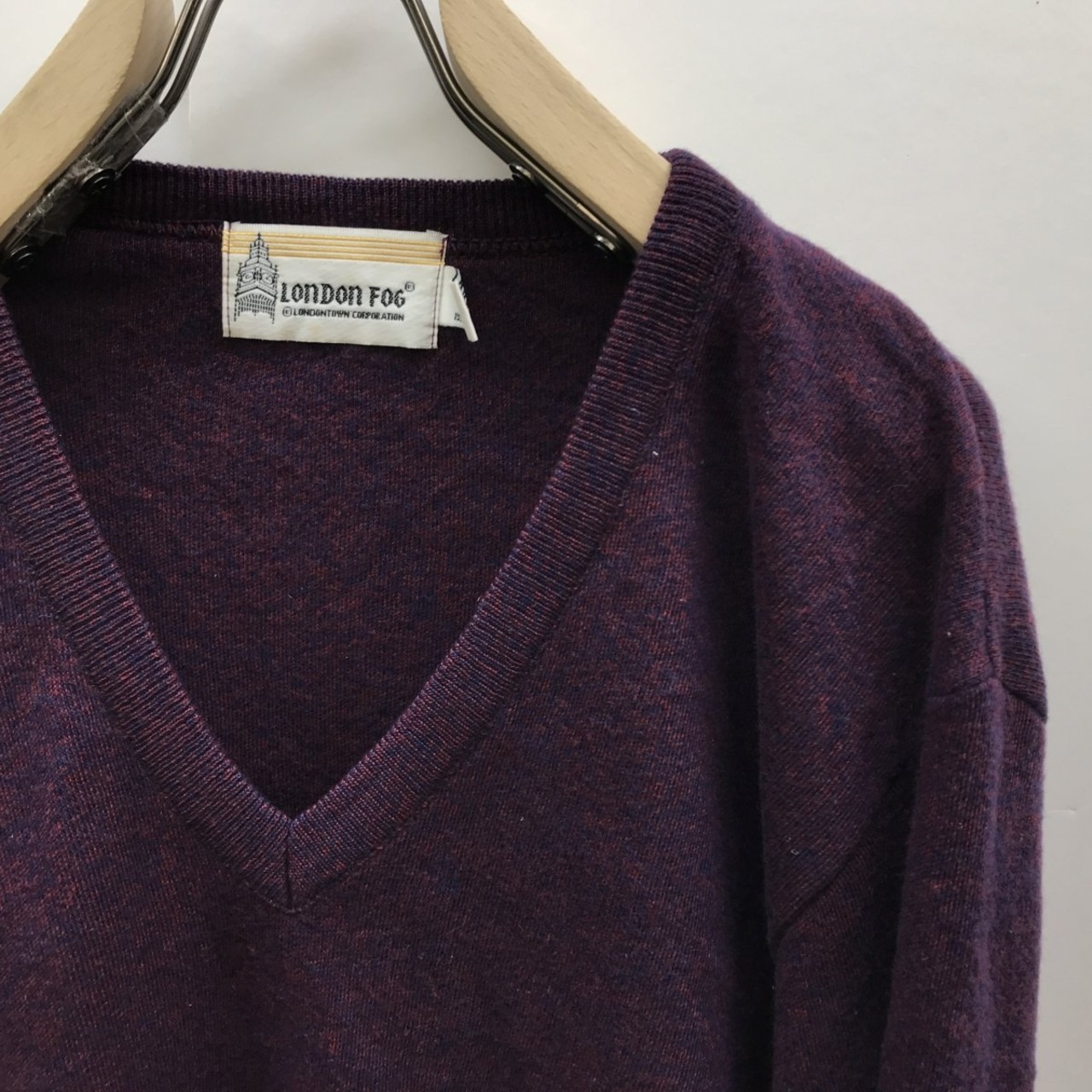 LONDON FOG ロンドンフォグ 80〜90年代 USA製 長袖 アクリルVネックセーター パープルミックス L