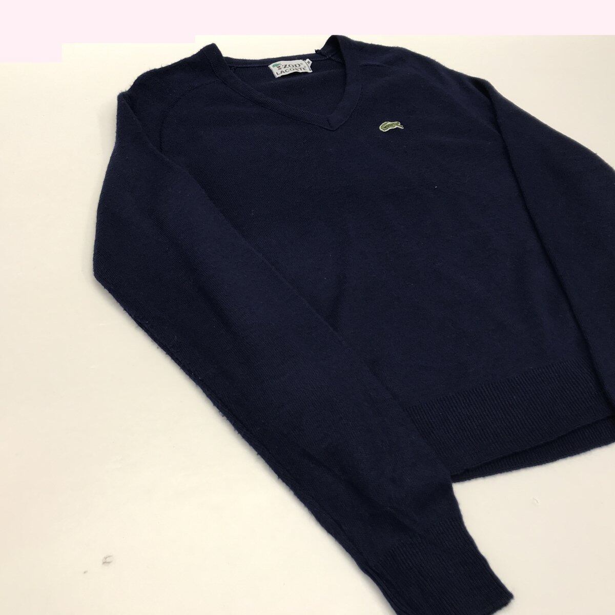 IZOD LACOSTE アイゾッド ラコステ 70年代 USA製 ビンテージ 長袖 アクリル Vネックセーター ネイビー L