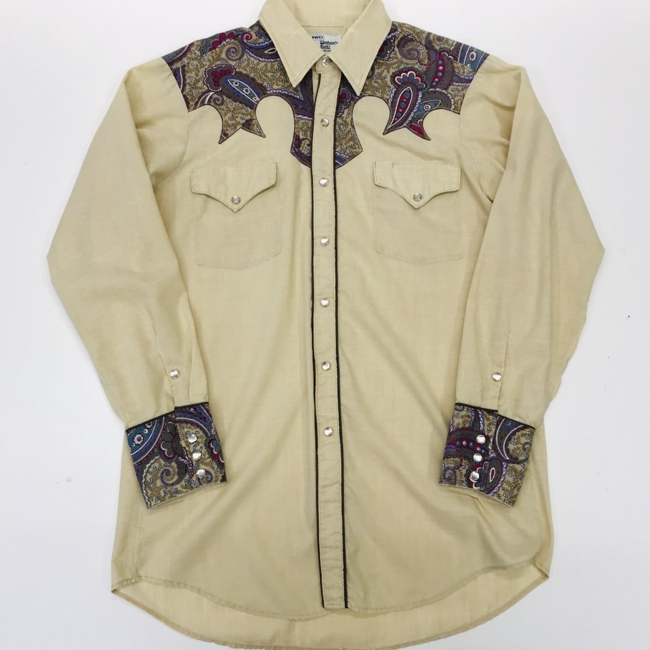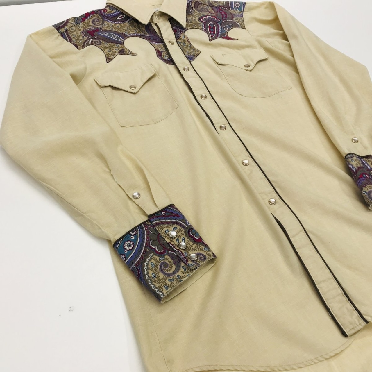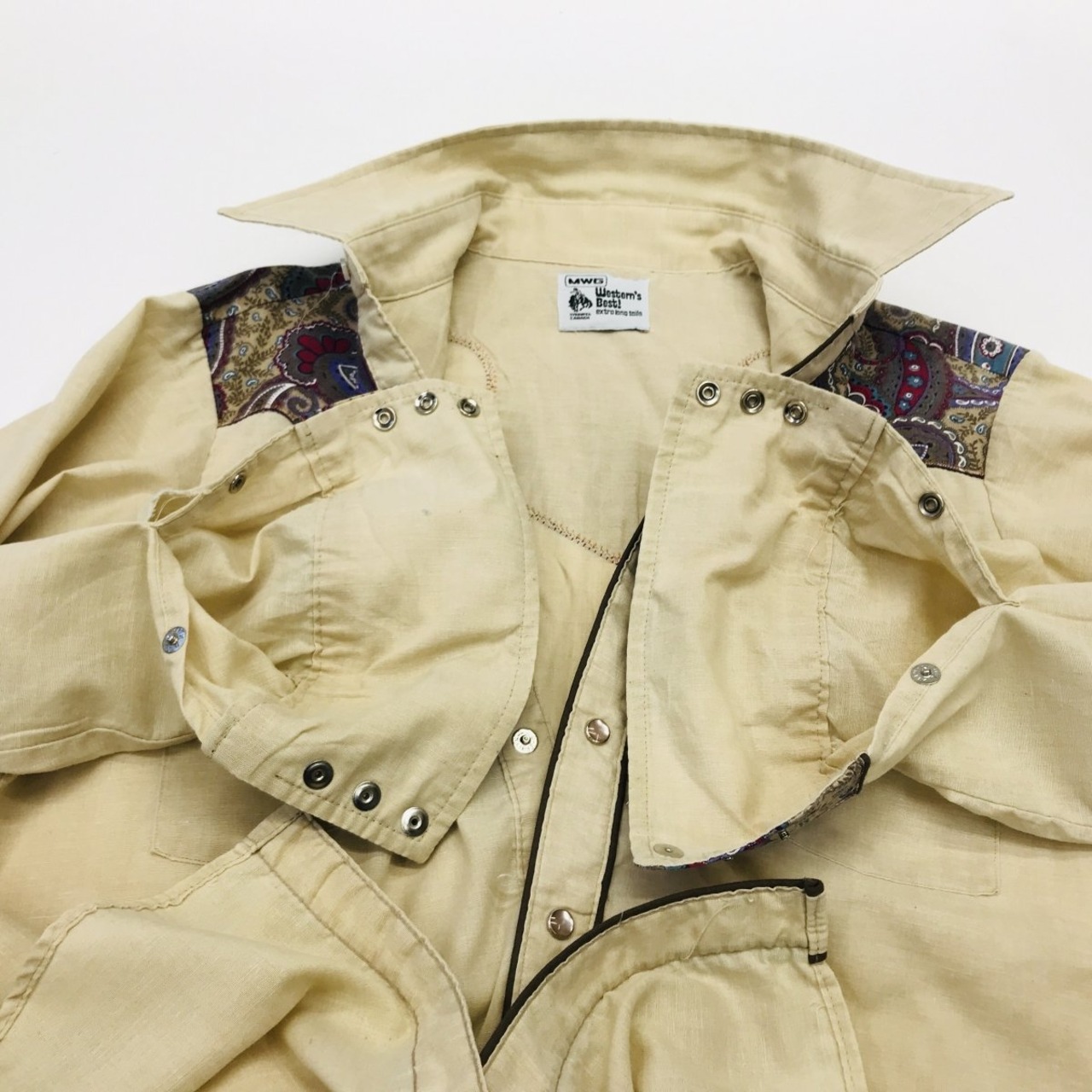 MNG エヌエムジー WESTERN'S BEST CANADA ヨーク切り替え ペイスリー柄 長袖 ウエスタンシャツ クリームベージュ XL