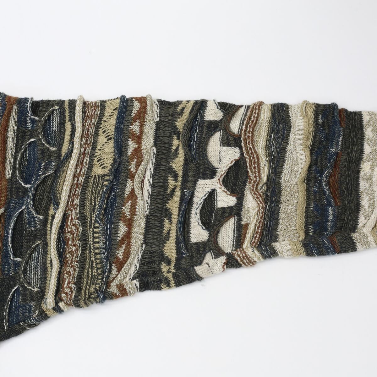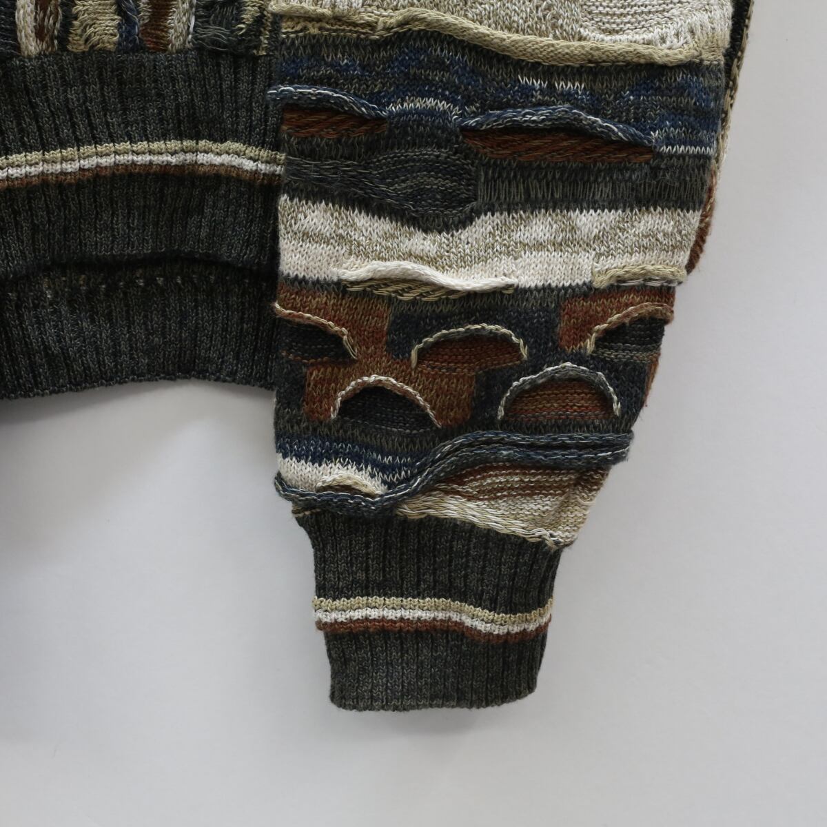 COTTON TRADERS 80年代 3D ニット 長袖 トップス Vネック ウェーブ 幾何学 パイピング オレンジ パープル ブルー クレイジー L