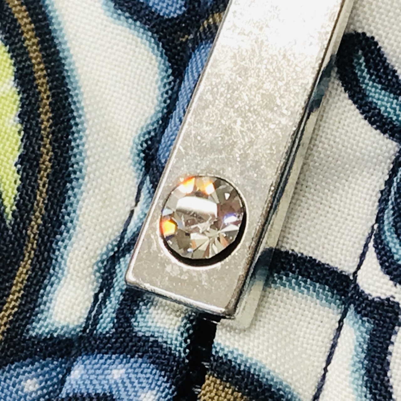 ファスナーの先にカットダイヤ風の飾りが付いています
