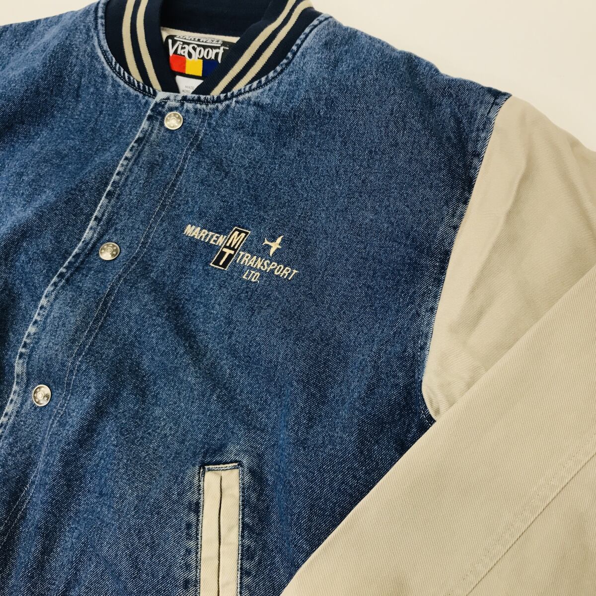 HARTWELL VIA SPORT ハートウェル 80〜90年代 袖切替 デニムスタジャン デニムとコットンツイルコンビ デニムジャケット XL