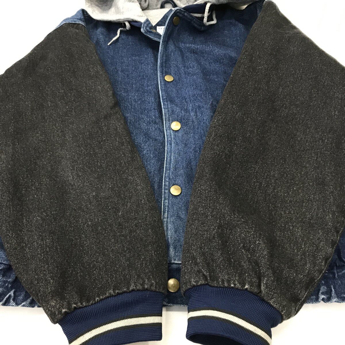 YUKON TRAVEL ユーコントラベル 80〜90年代 裏スウェット フード付き デニムスタジャン 切り替え 袖ブラックデニム XXL
