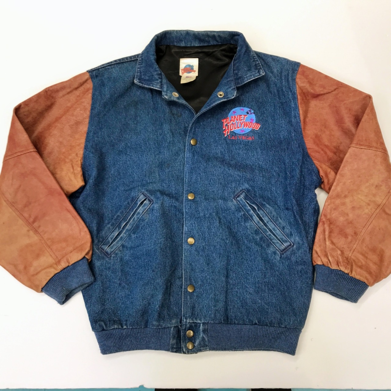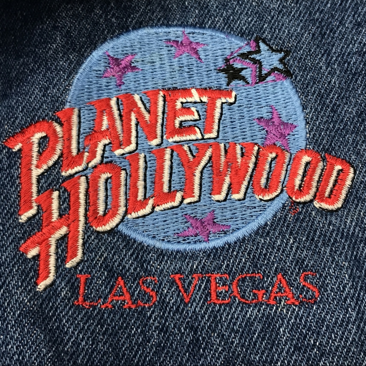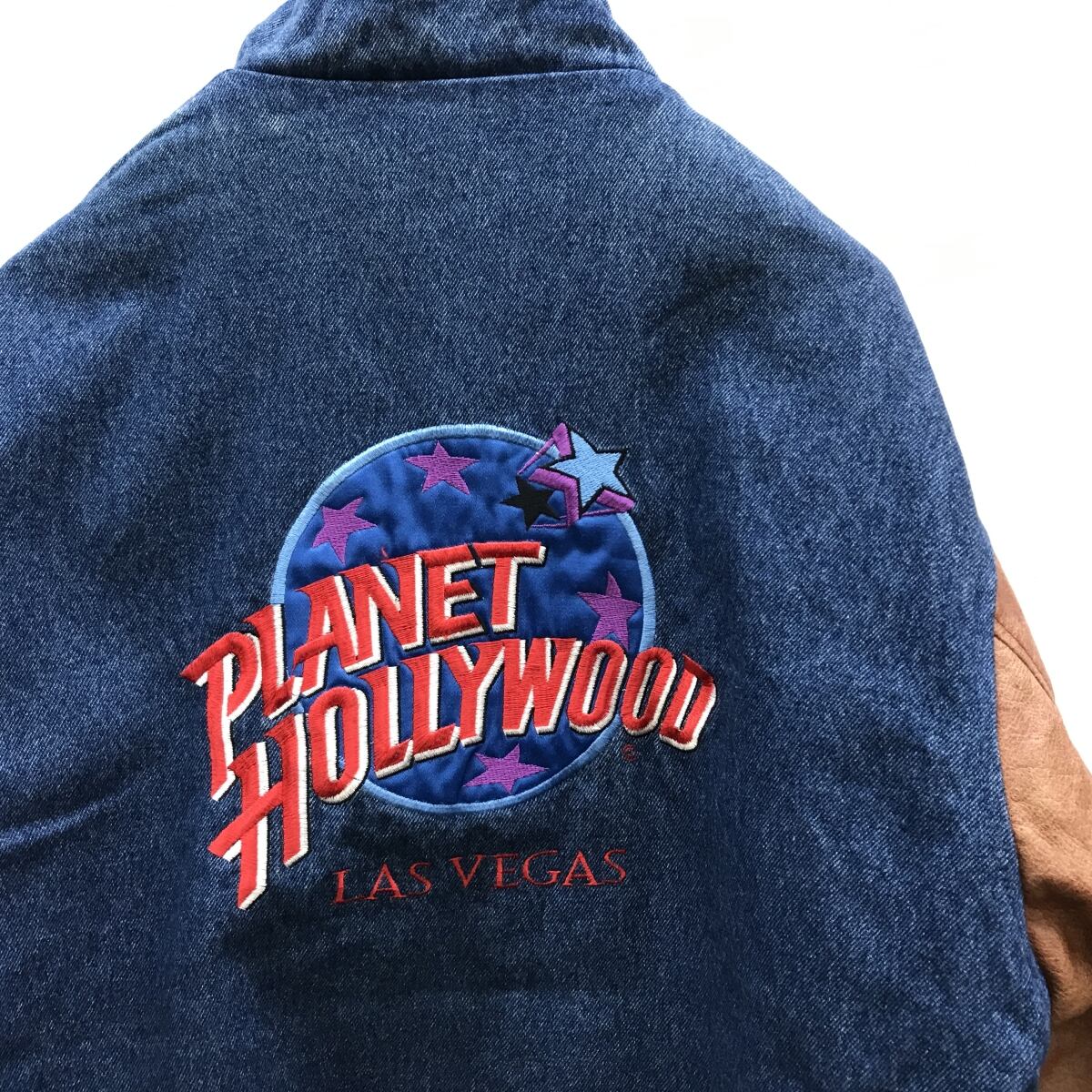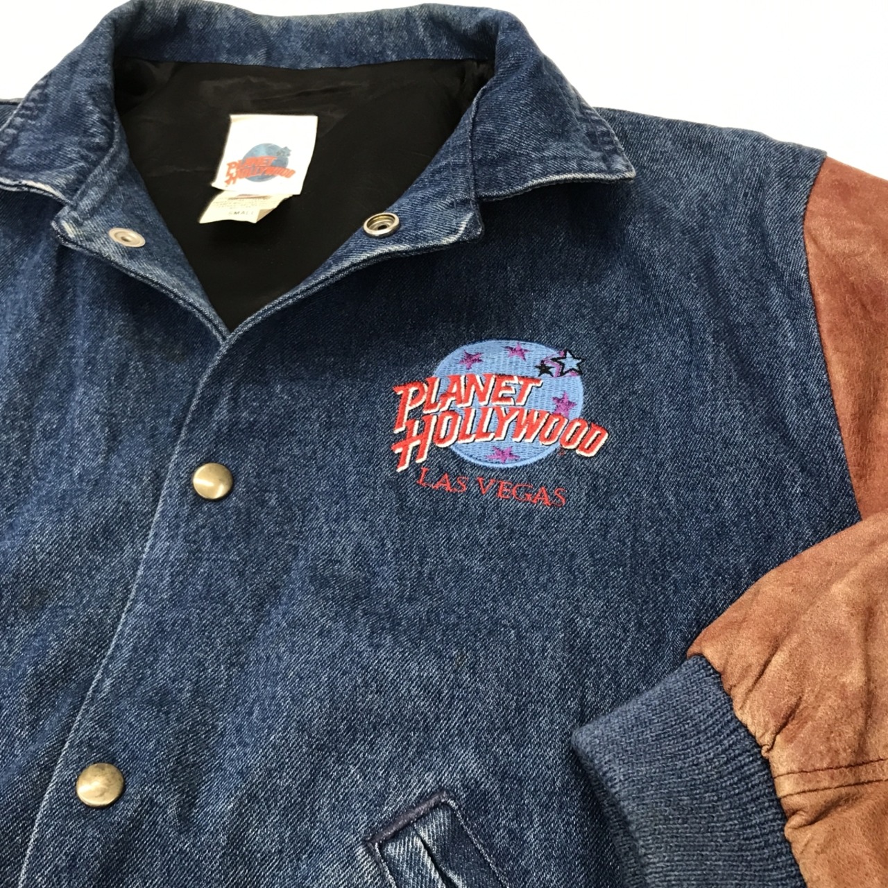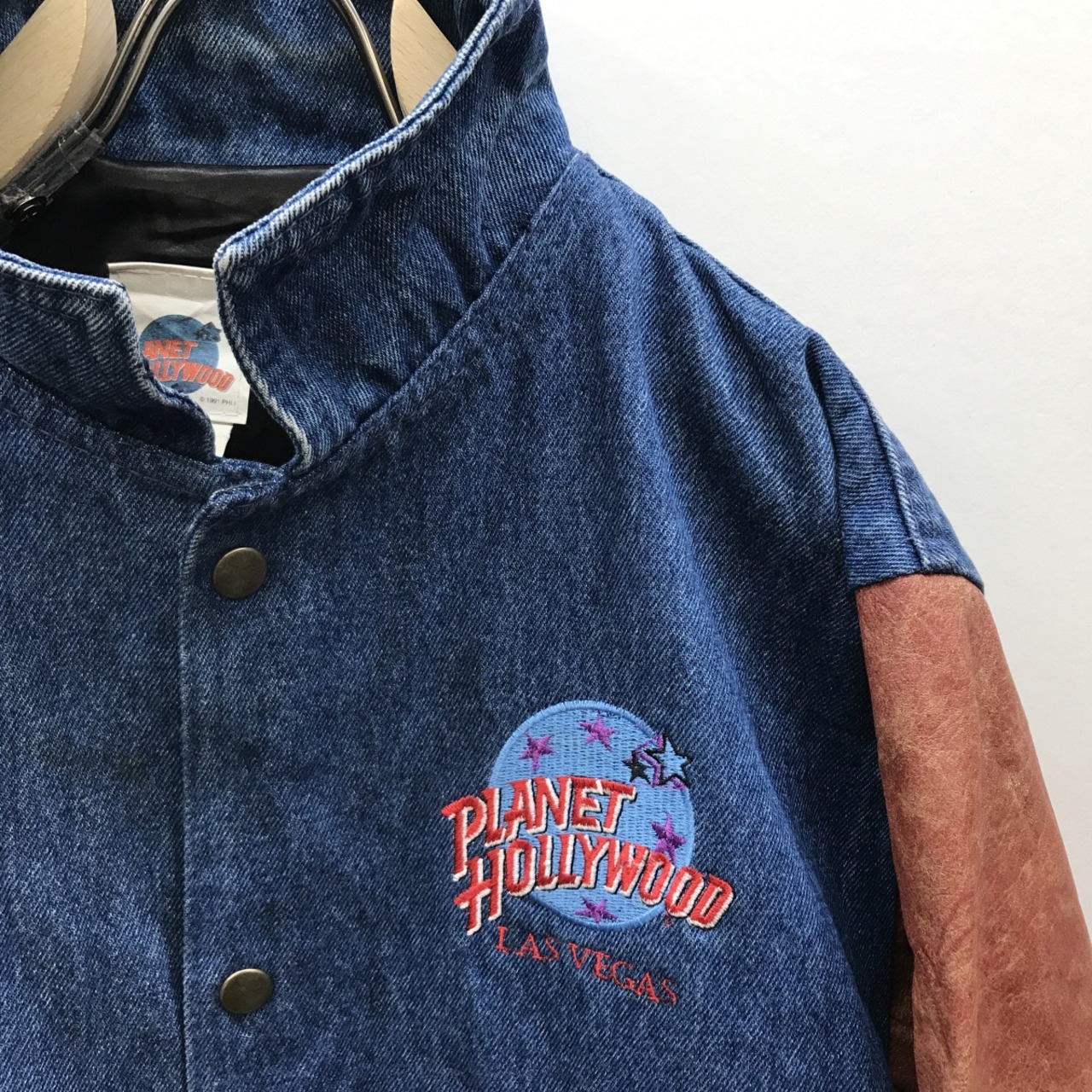 PLANET HOLLYWOOD LAS VEGAS 90年代 USA製 プラネットハリウッド 長袖 袖革デニムスタジャン L相当