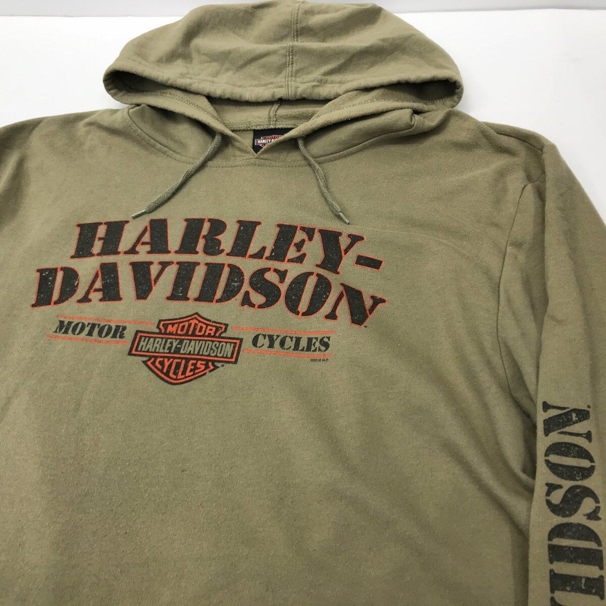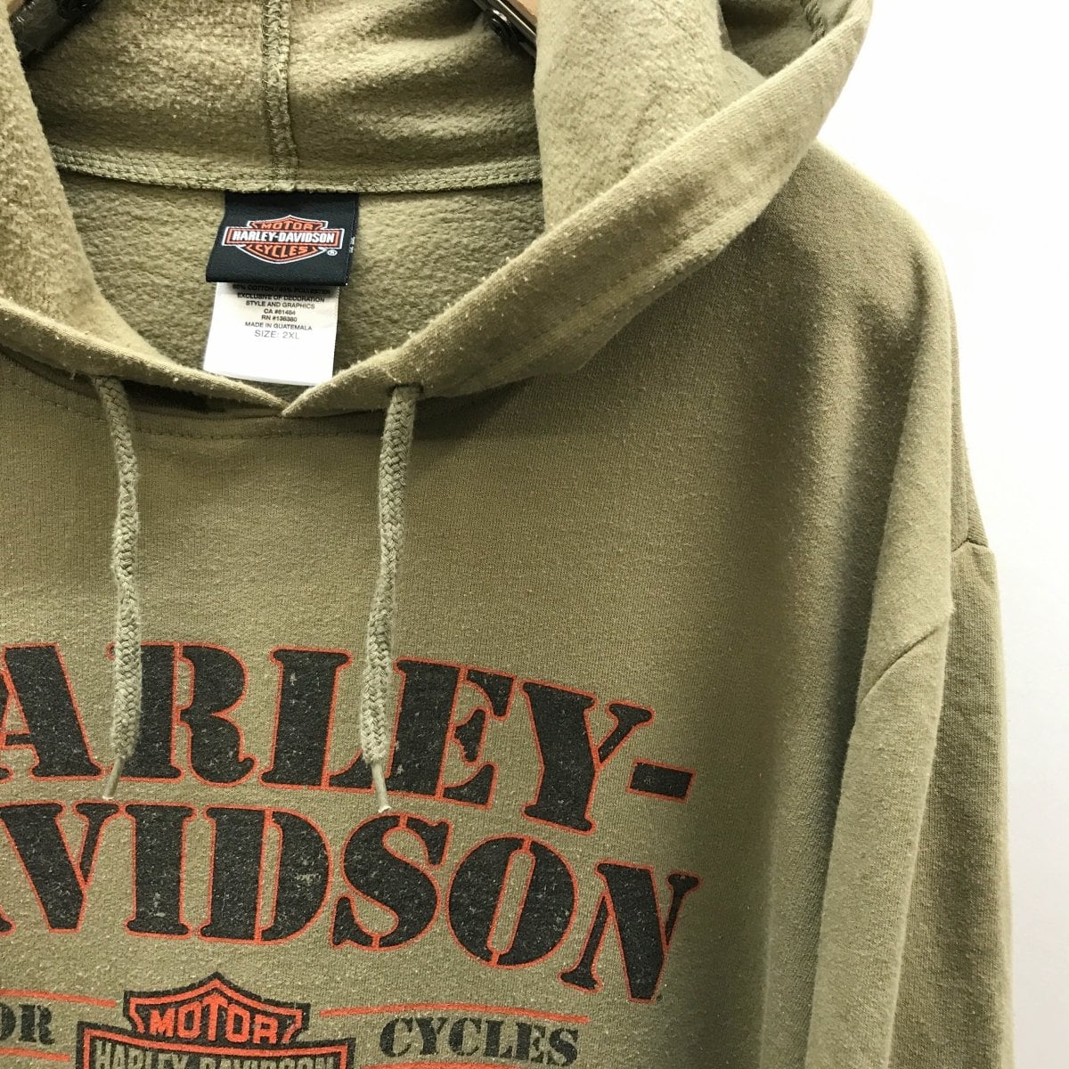 HARLEYDAVIDSON ハーレーダビッドソ 00年代 WORTH HARLEY-DAVIDSON 長袖 両面と袖プリントパーカー うすカーキ XXL