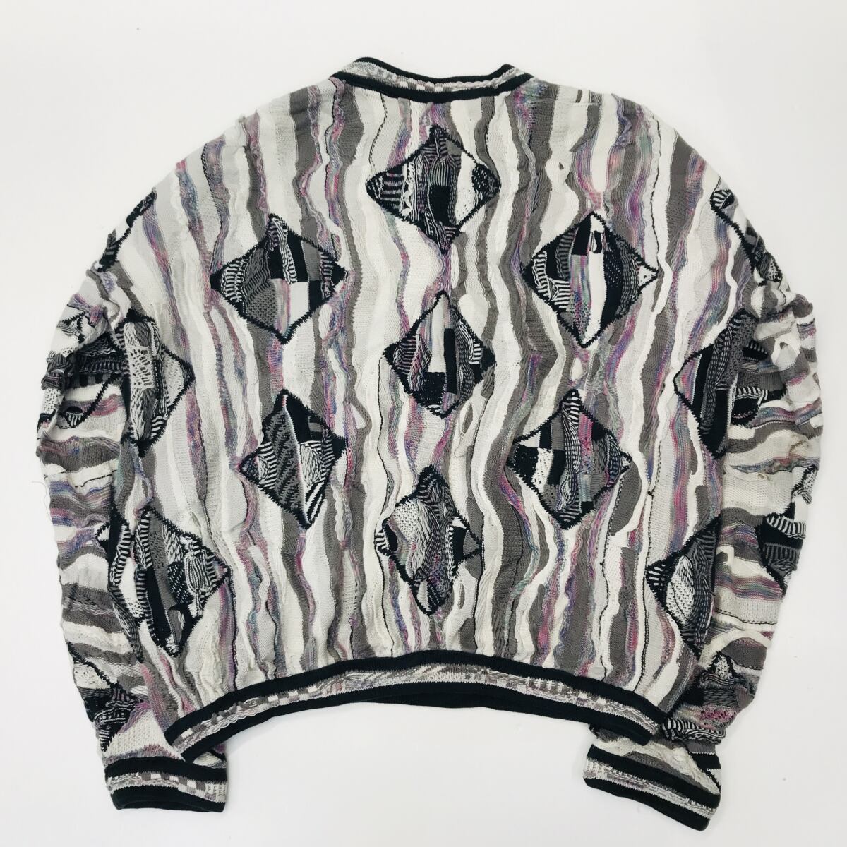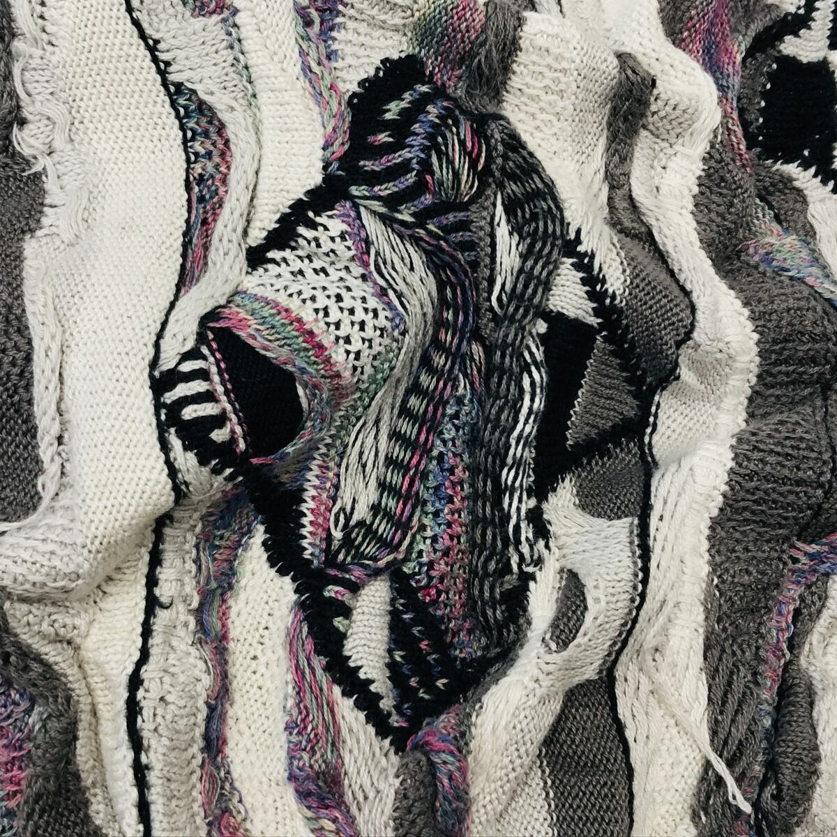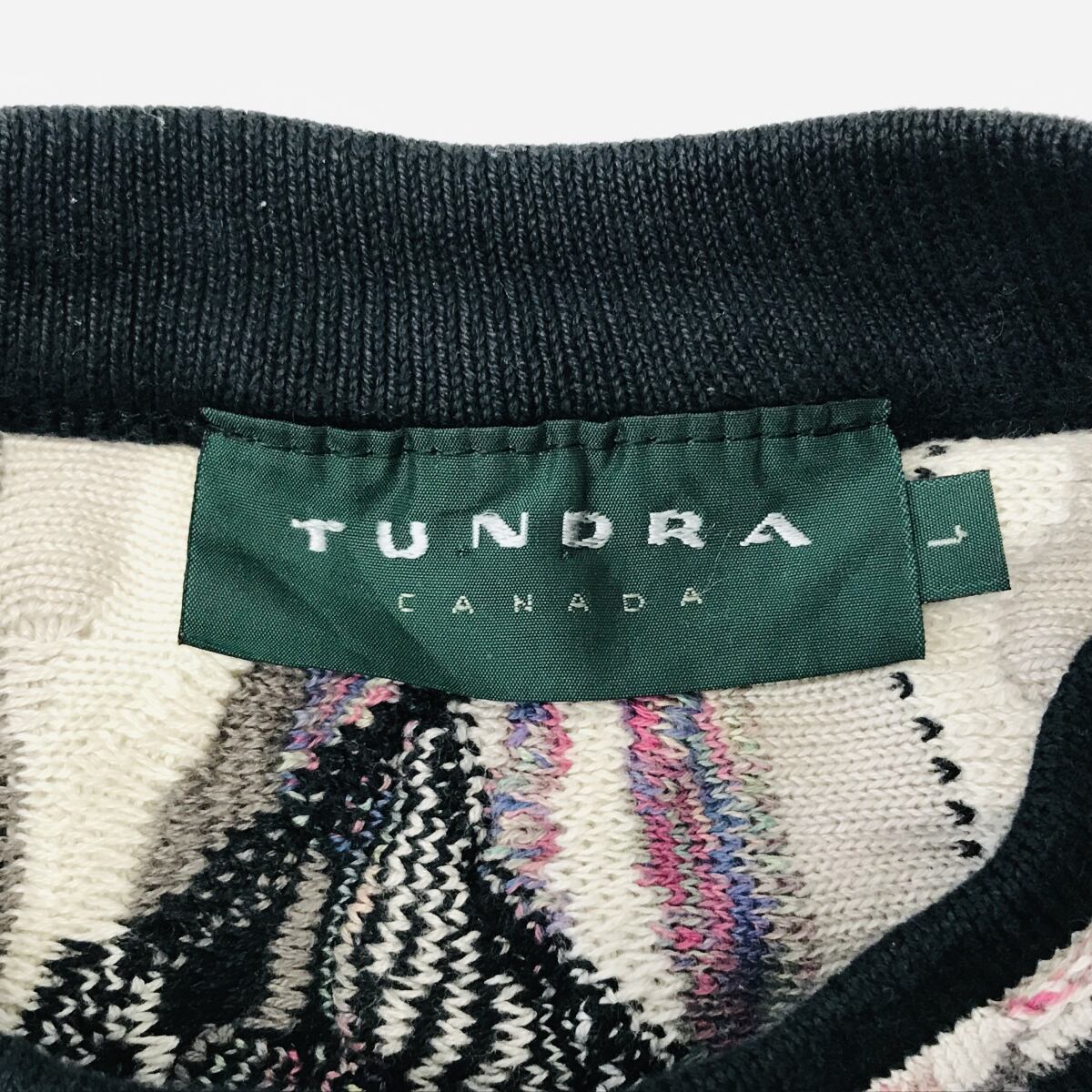 TUNDRA ツンドラ 90年代 CANADA製 クージー風 総柄 3Dニット コットンニット セーター ホワイト グレー ブラック レインボー L