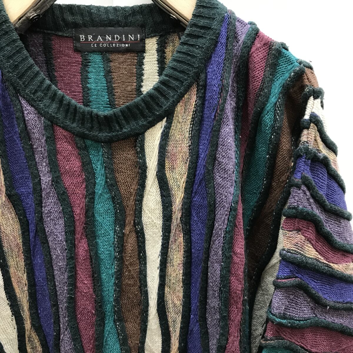 BRANDINI ブランディーニ 90年代 クージー風 総柄 3Dニットコットン アクリルニット セーター ハンターグリーン 他 マルチカラー XL以上〜