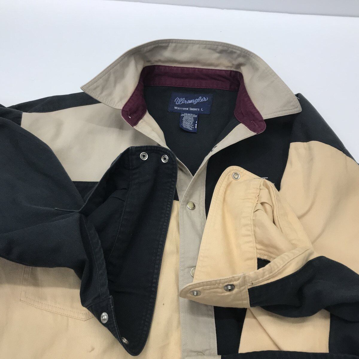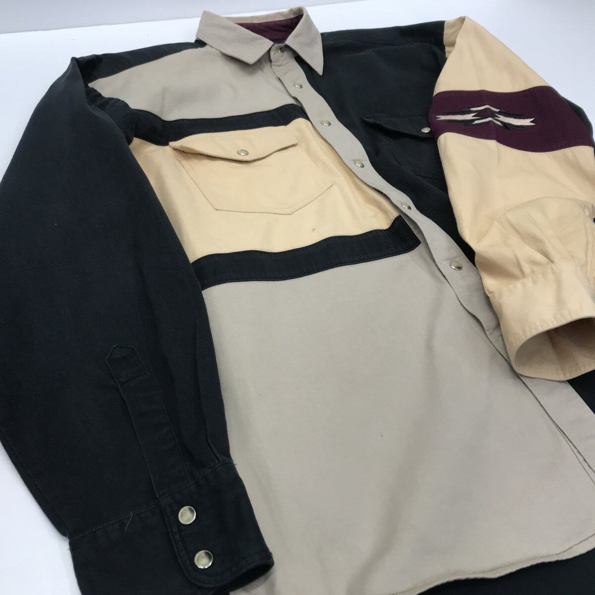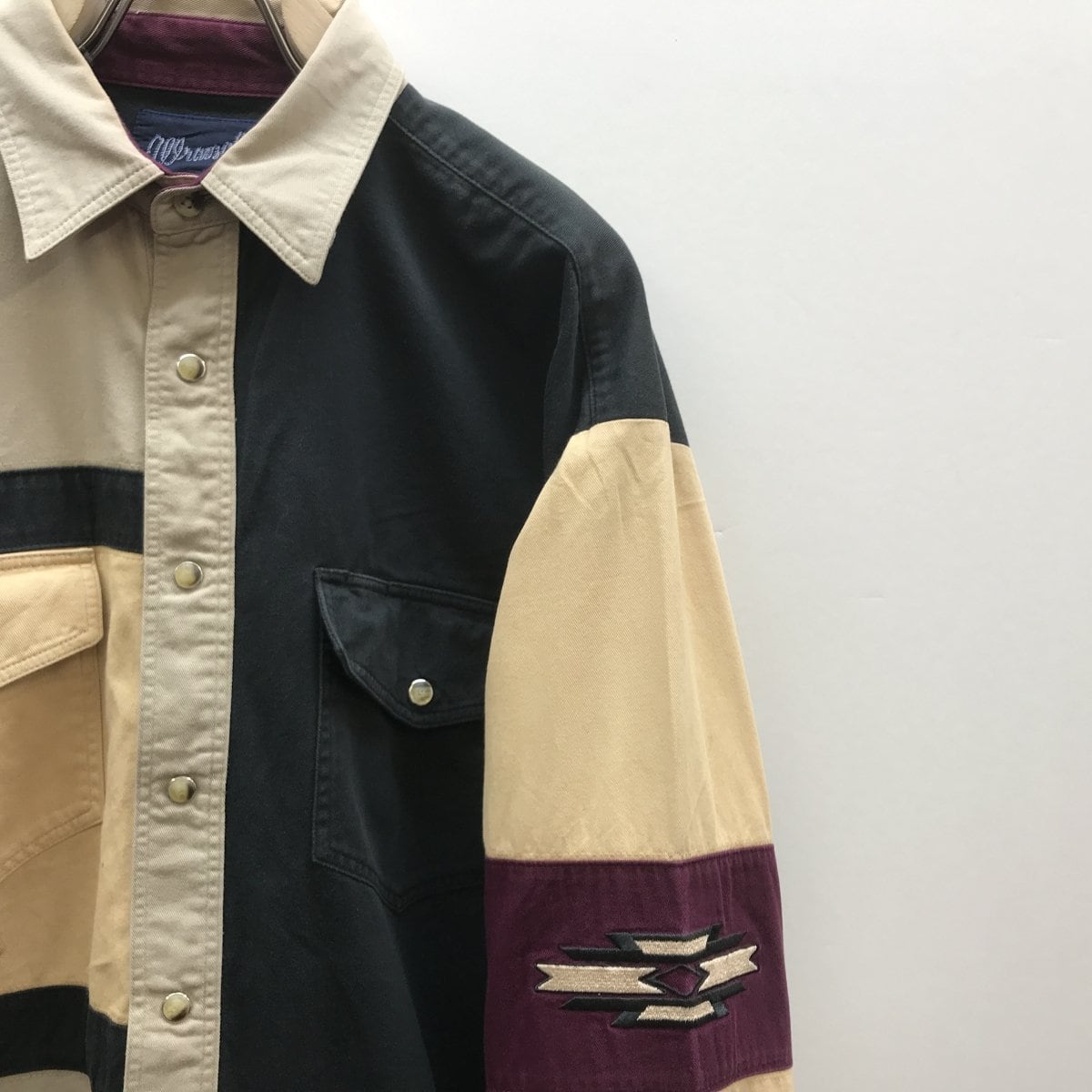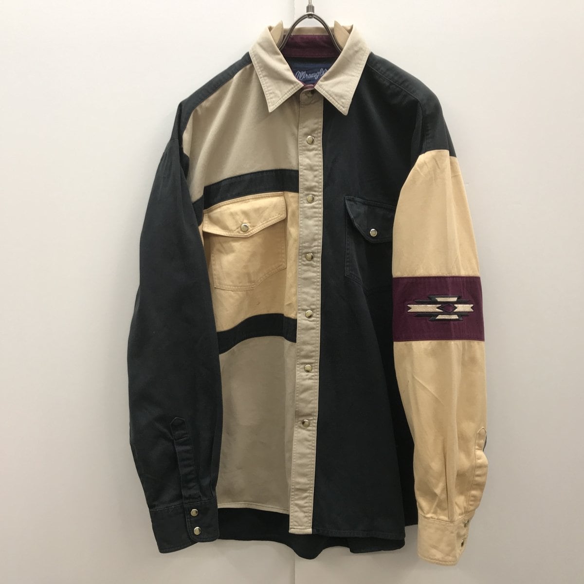 Wrangler ラングラー 90年代〜 切り替え 刺繍入り クレイジーパターン 長袖 ウエスタンシャツ ベージュ、ブラック XL
