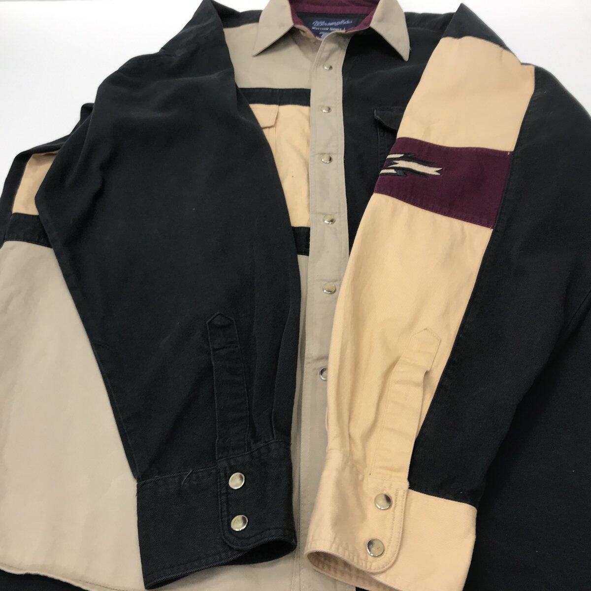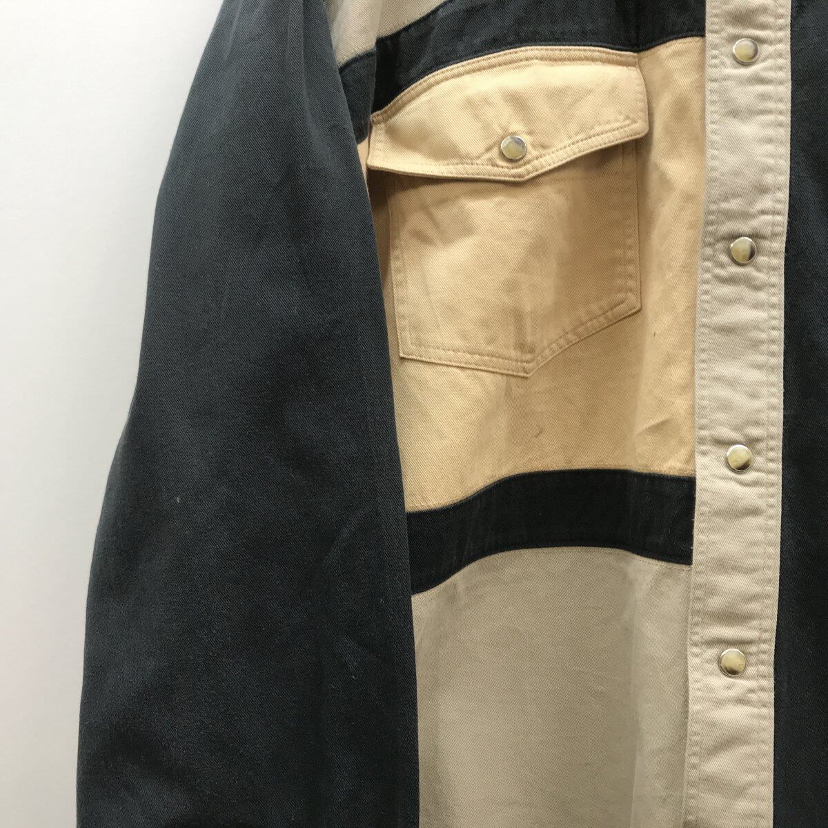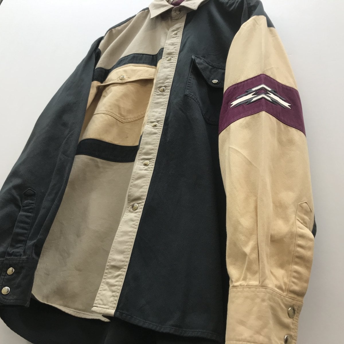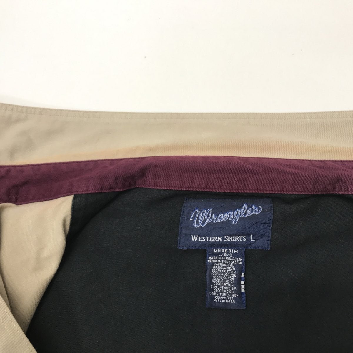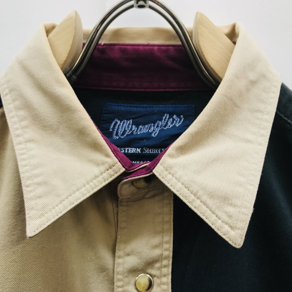 Wrangler ラングラー 90年代〜 切り替え 刺繍入り クレイジーパターン 長袖 ウエスタンシャツ ベージュ、ブラック XL
