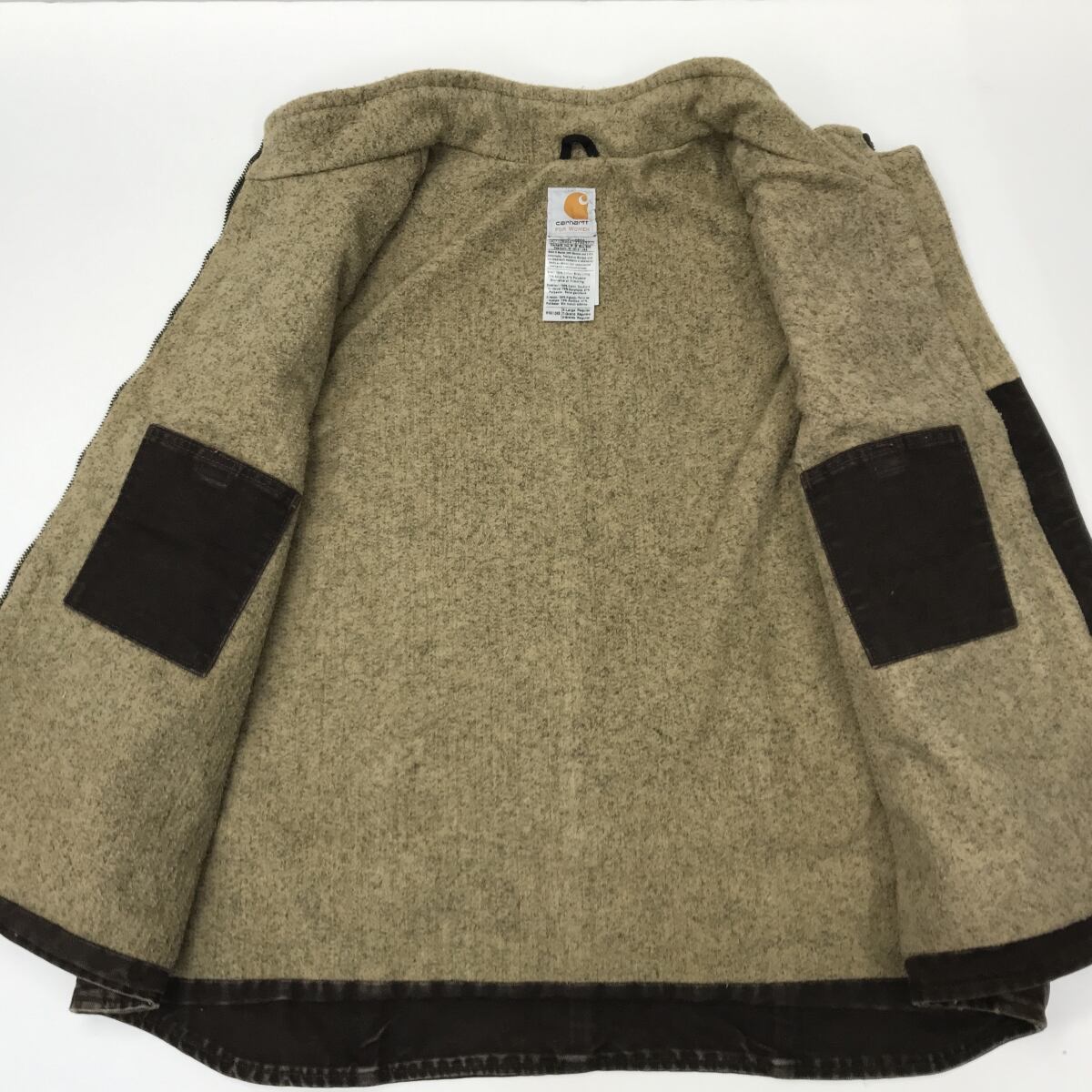Carharttで スタンドカラーで ダークブラウンダックの裏ブランケット