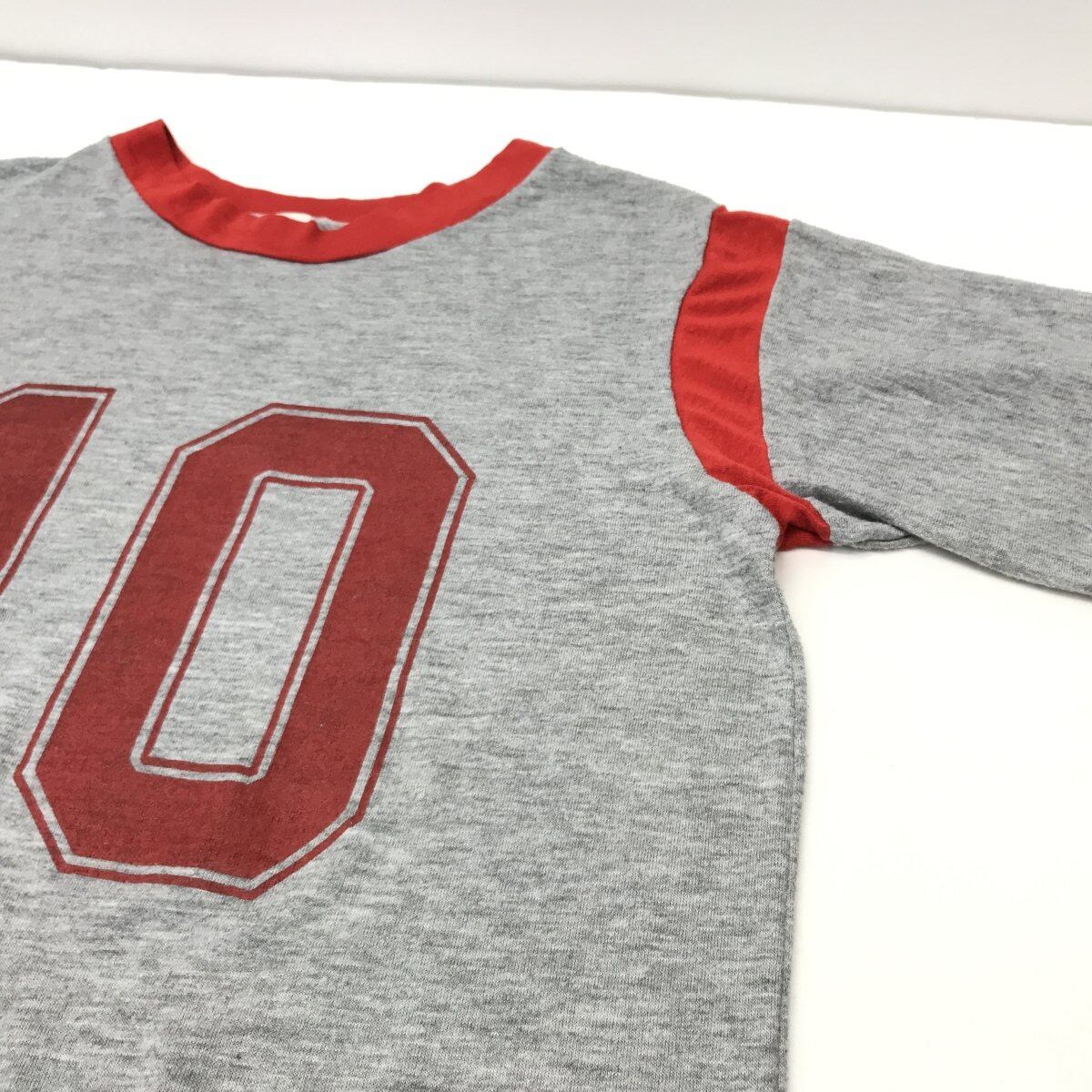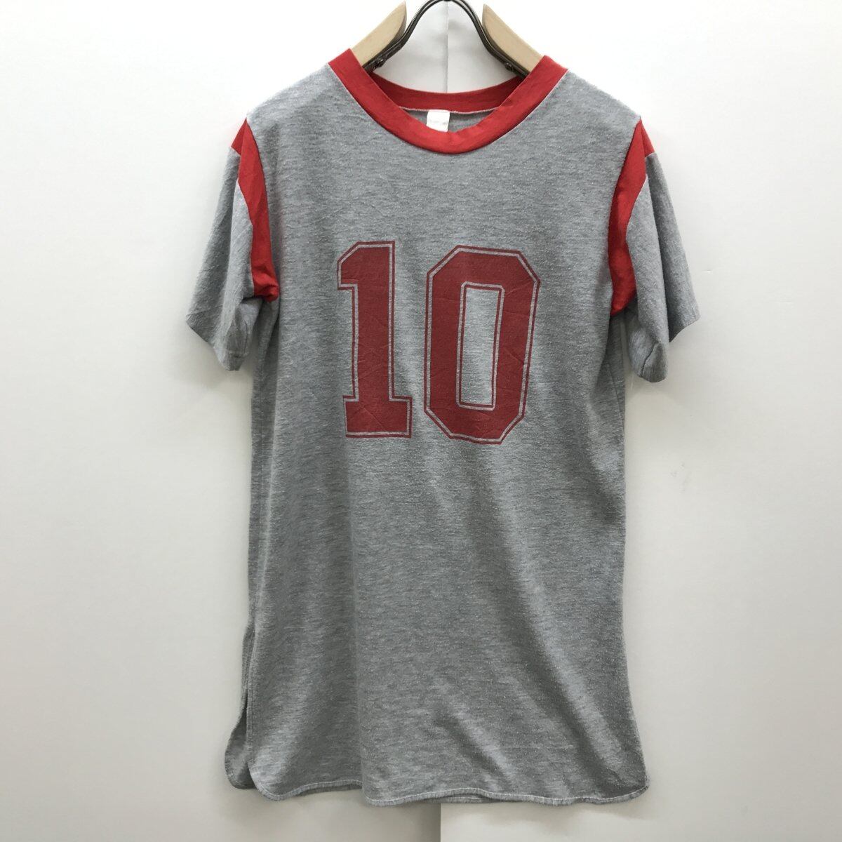 ユーズド 70〜80年代 USA製 ビンテージ ロング丈 スリット入り 半袖ファッション フットボールT NO.10 アッシュグレー S